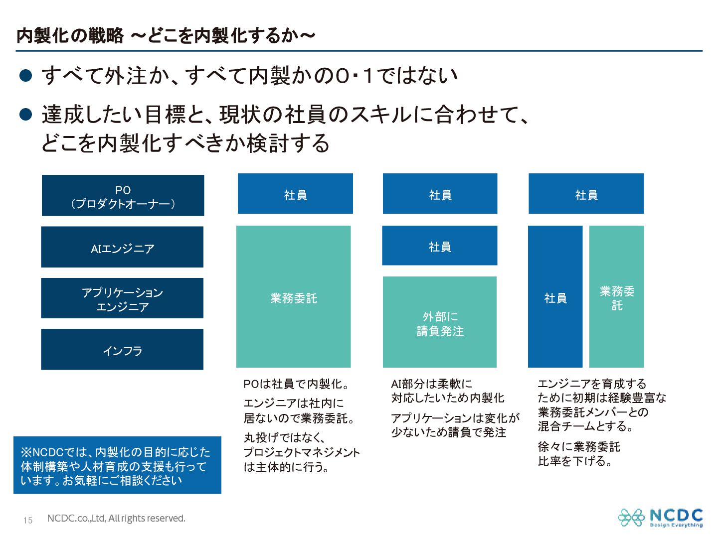 そのため、変化のスピードに対応し、ノウハウを自社に蓄積しながら主体的に生成AI活用を推進する「内製化」が、今、多くの企業にとって重要な経営課題となっています。