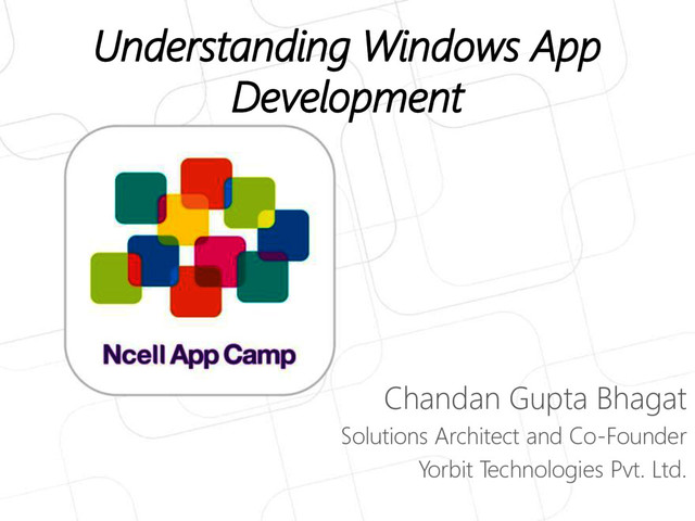 Chandan introduced participants to modern design and its prerequisites. It gave them tips on app development in Windows Platform and in understanding Universal Windows Platform (UWP). Ncell App Camp 2015