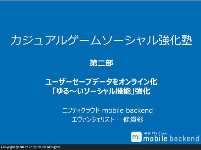 Copyright @ NIFTY Corporation All Rights ニフティクラウド mobile backend エヴァンジェリスト