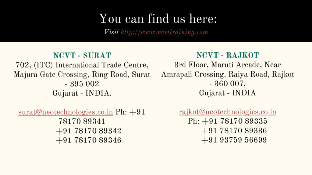 Know more visit http://www.ncvttraining.com/embedded.html or Email: [email protected] or Call on +91 9327366905 or +91 9327366906.