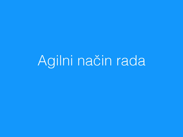 faze razvoja softvera dešavaju istovremeno, a za njihovo obavljanje, zaduženi su cross-functional timovi • Promovišu adaptivni razvoj i planiranje, rani demo i brz feedback, konstantno usavršavanje i adekvatnu i brzu reakciju na promenu