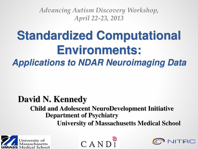 Advancing Autism Discovery Workshop, April 23, 2013. David Kennedy, Child and Adolescent NeuroDevelopment Initiative, Department of Psychology, University of Massachusetts Medical School