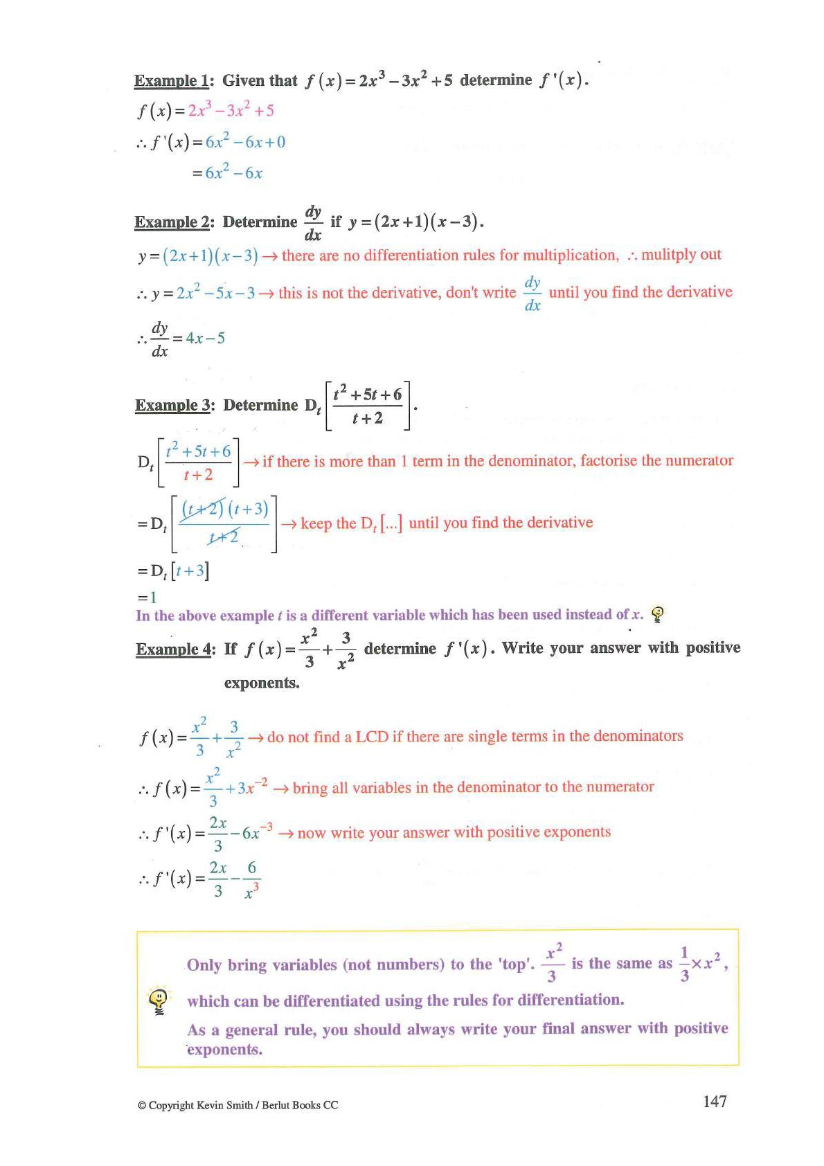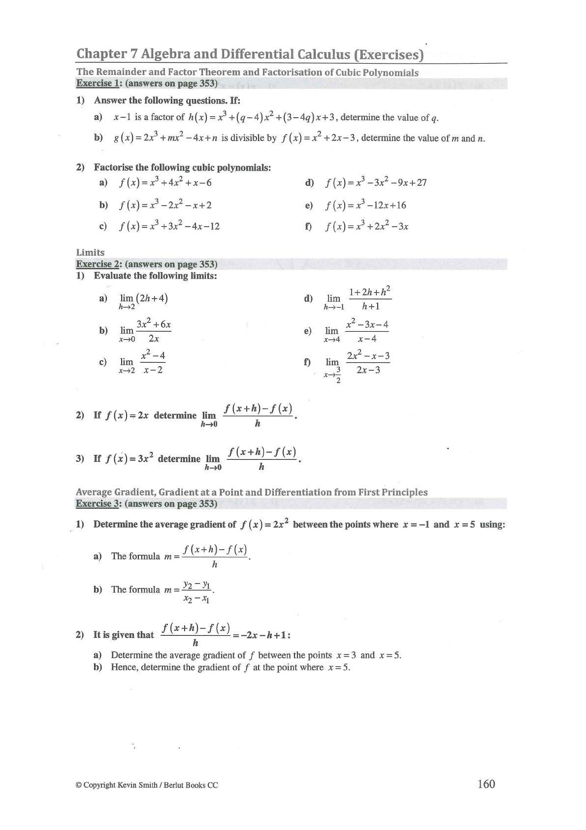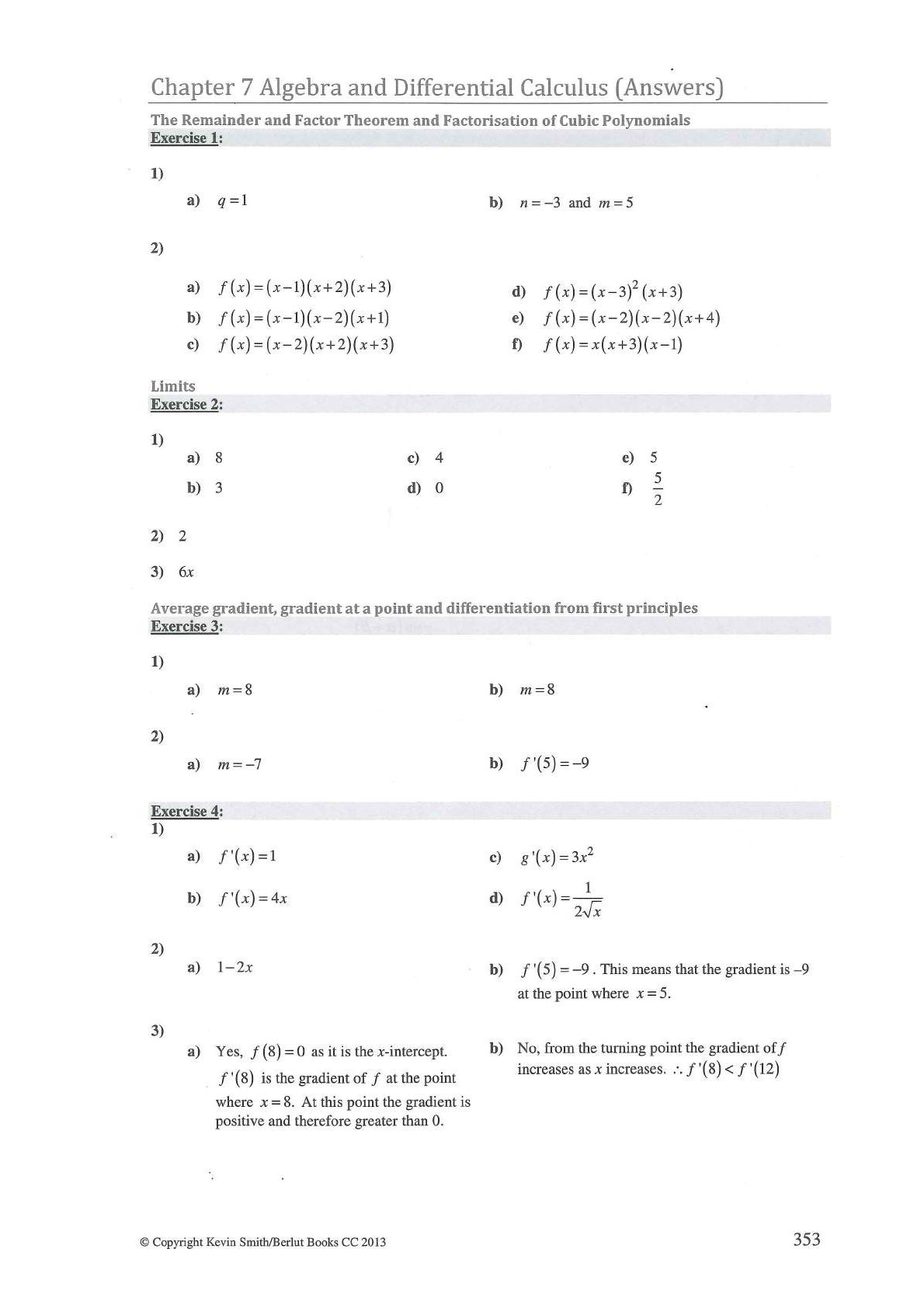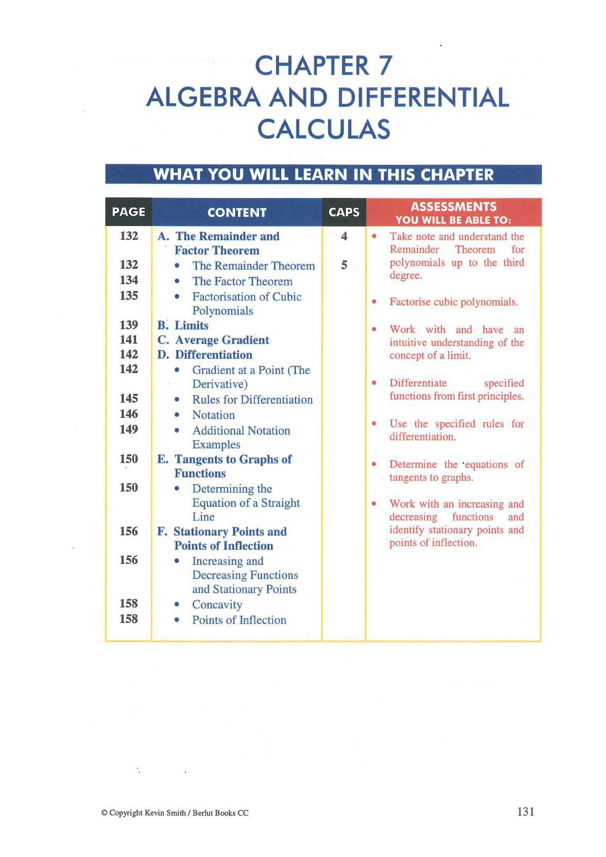 CHAPTER 7 ALGEBRA AND DIFFERENTIAL CALCULAS