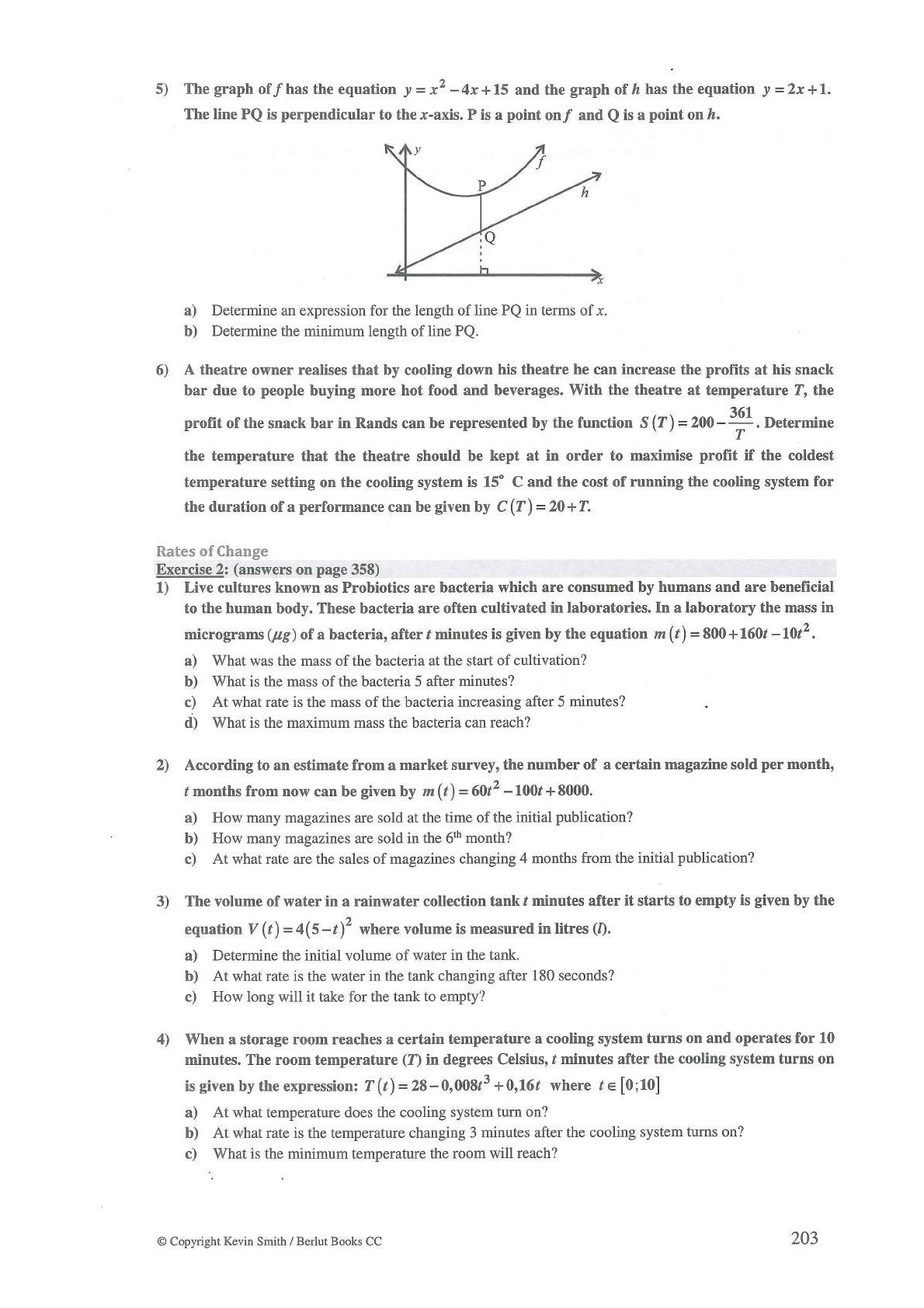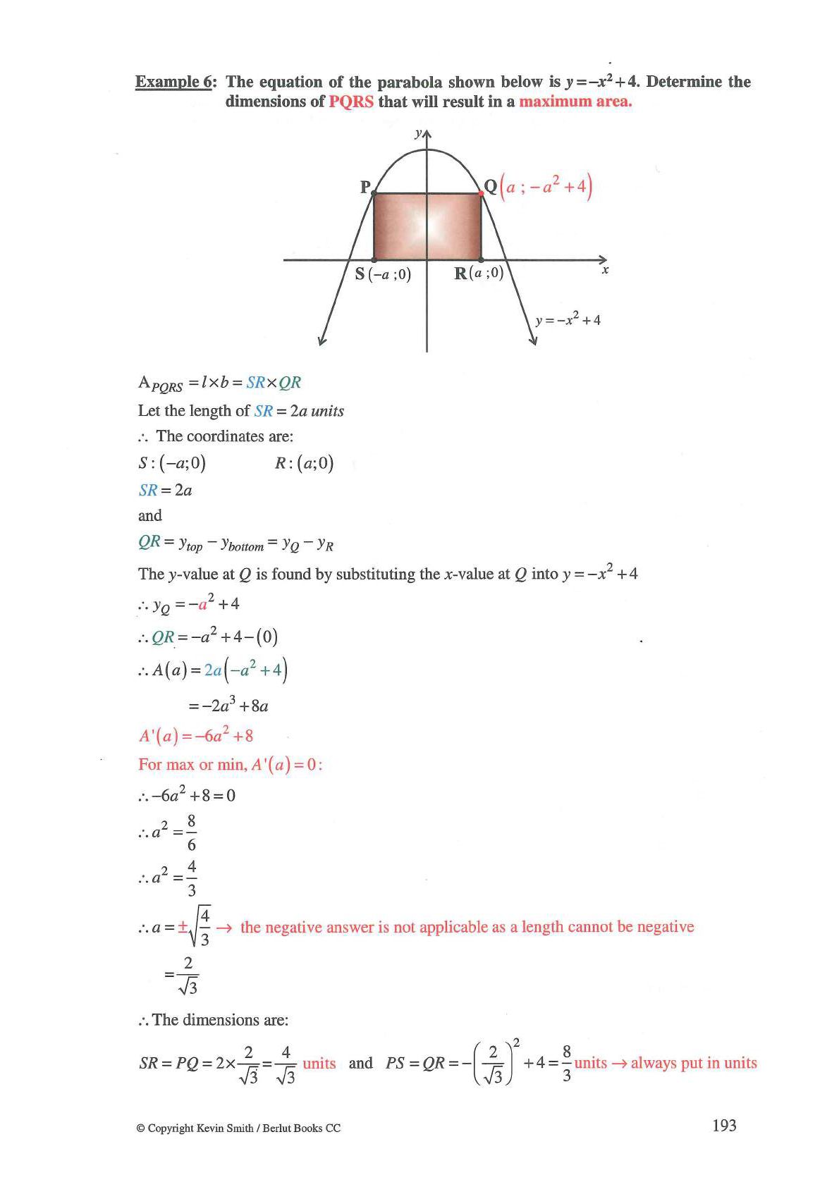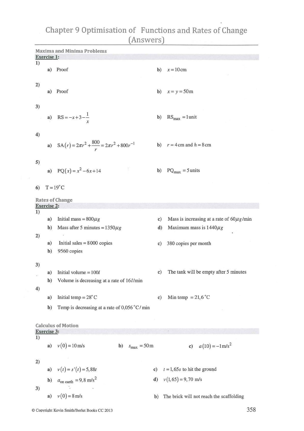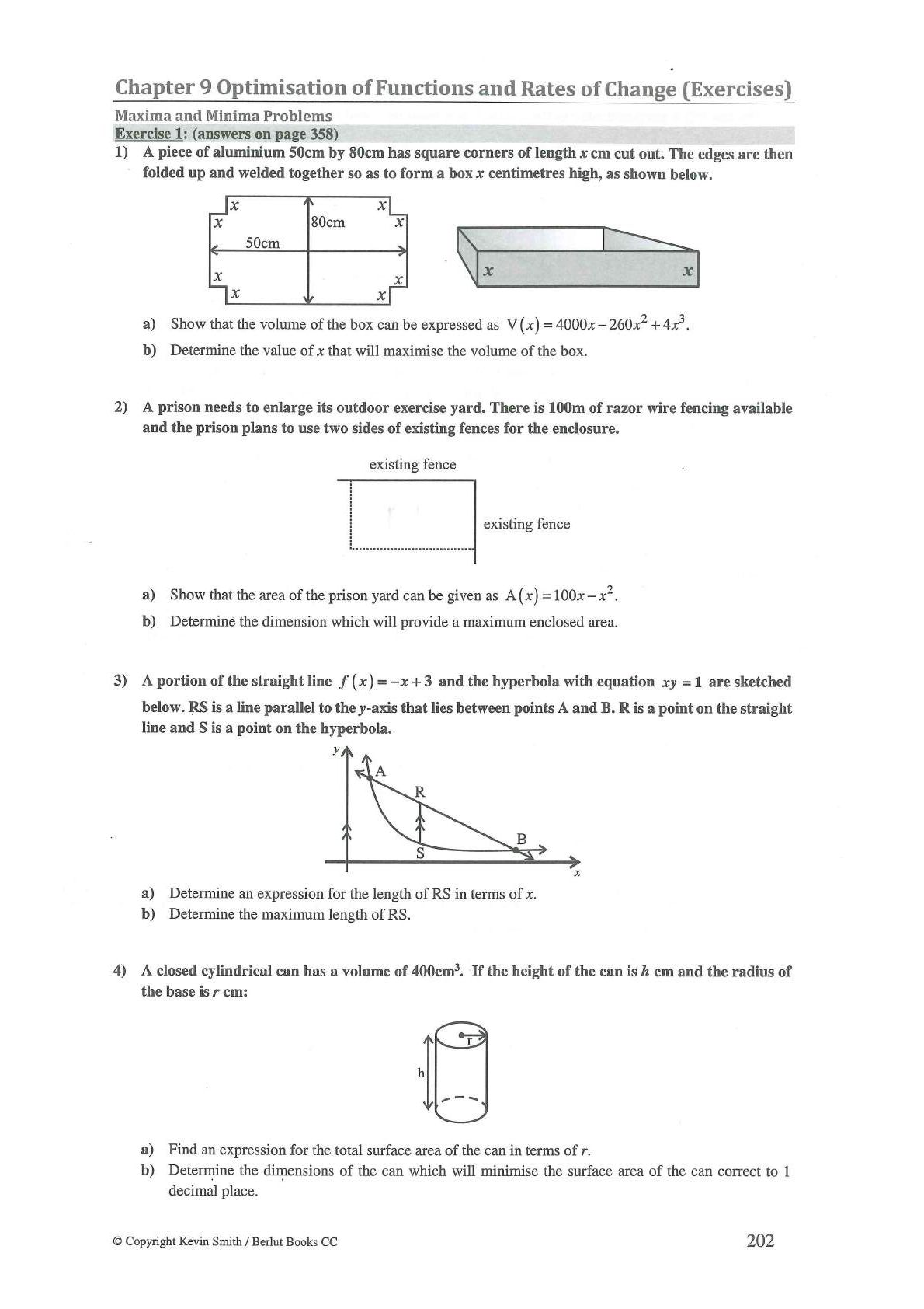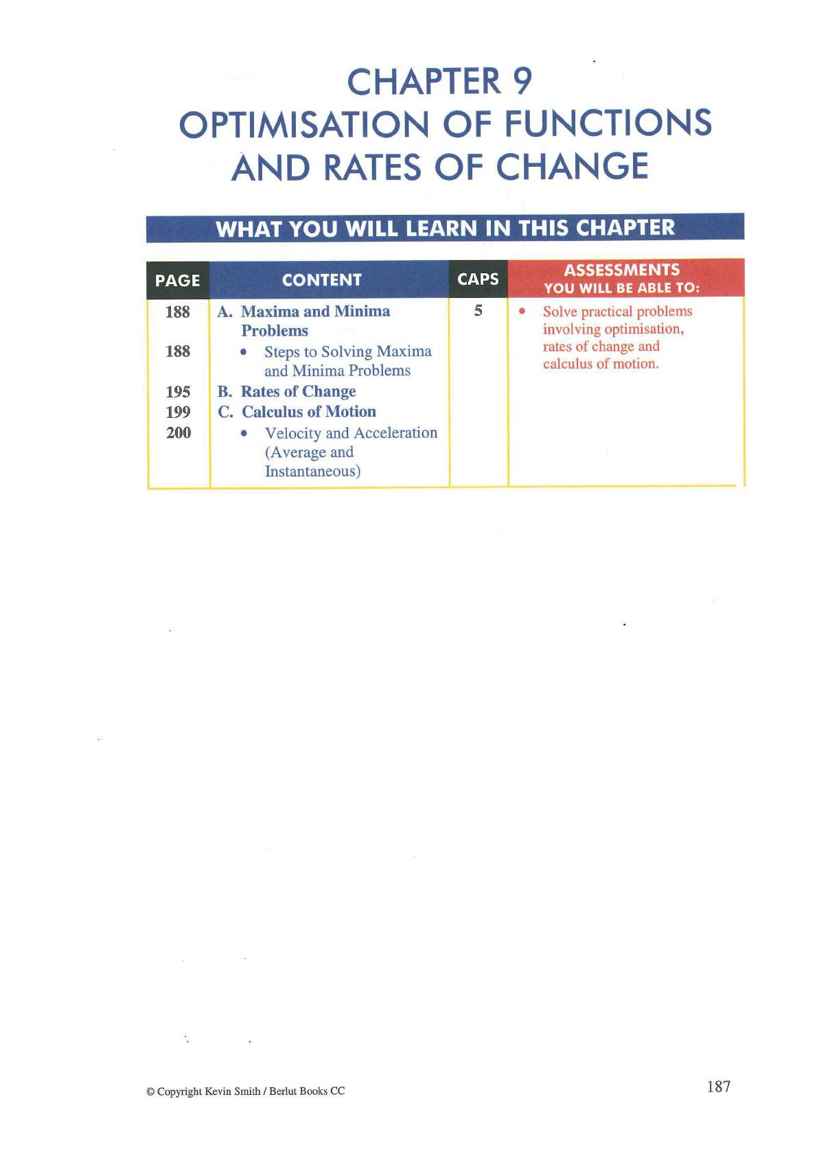 CHAPTER 9 OPTIMISATION OF FUNCTIONS AND RATE OF CHANGE