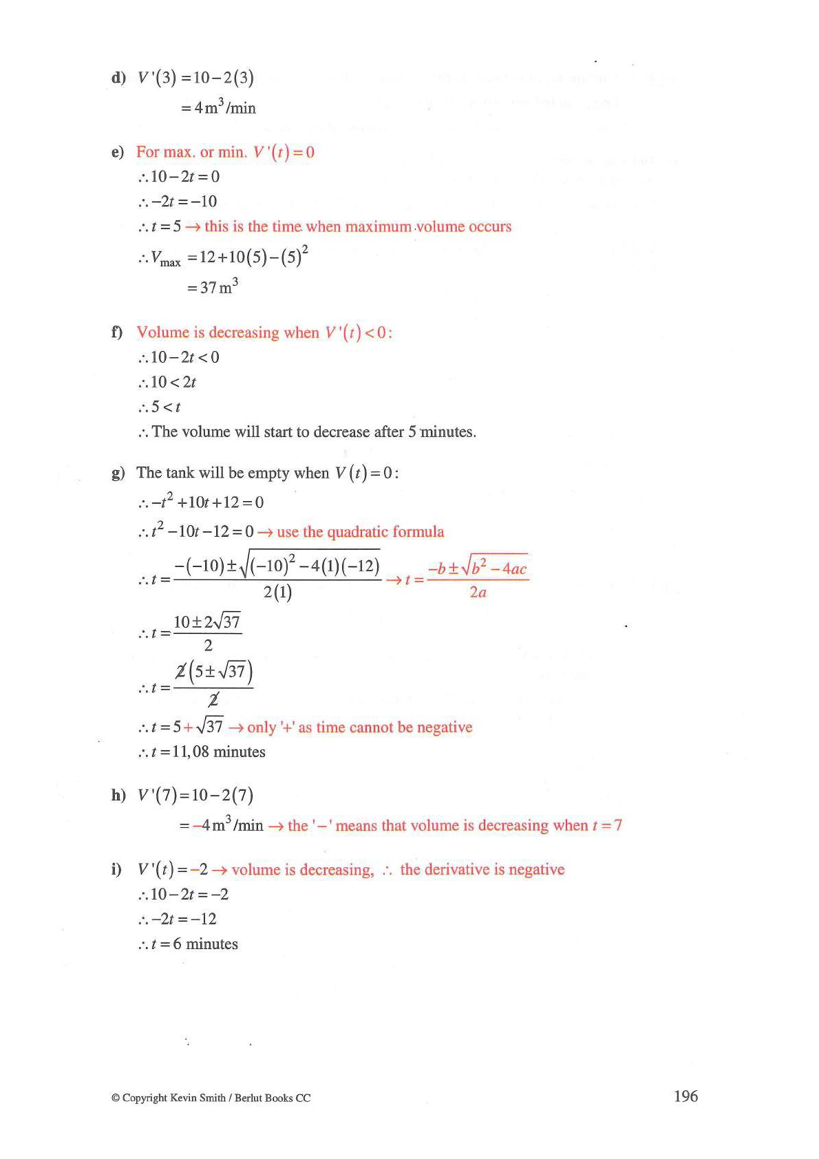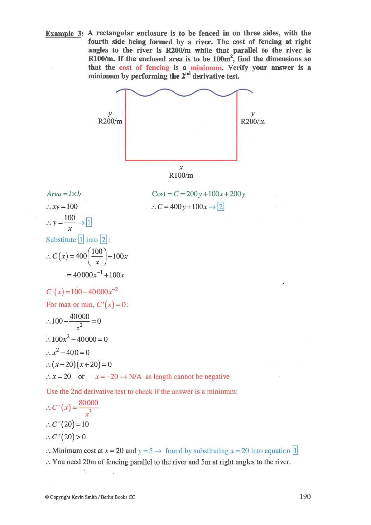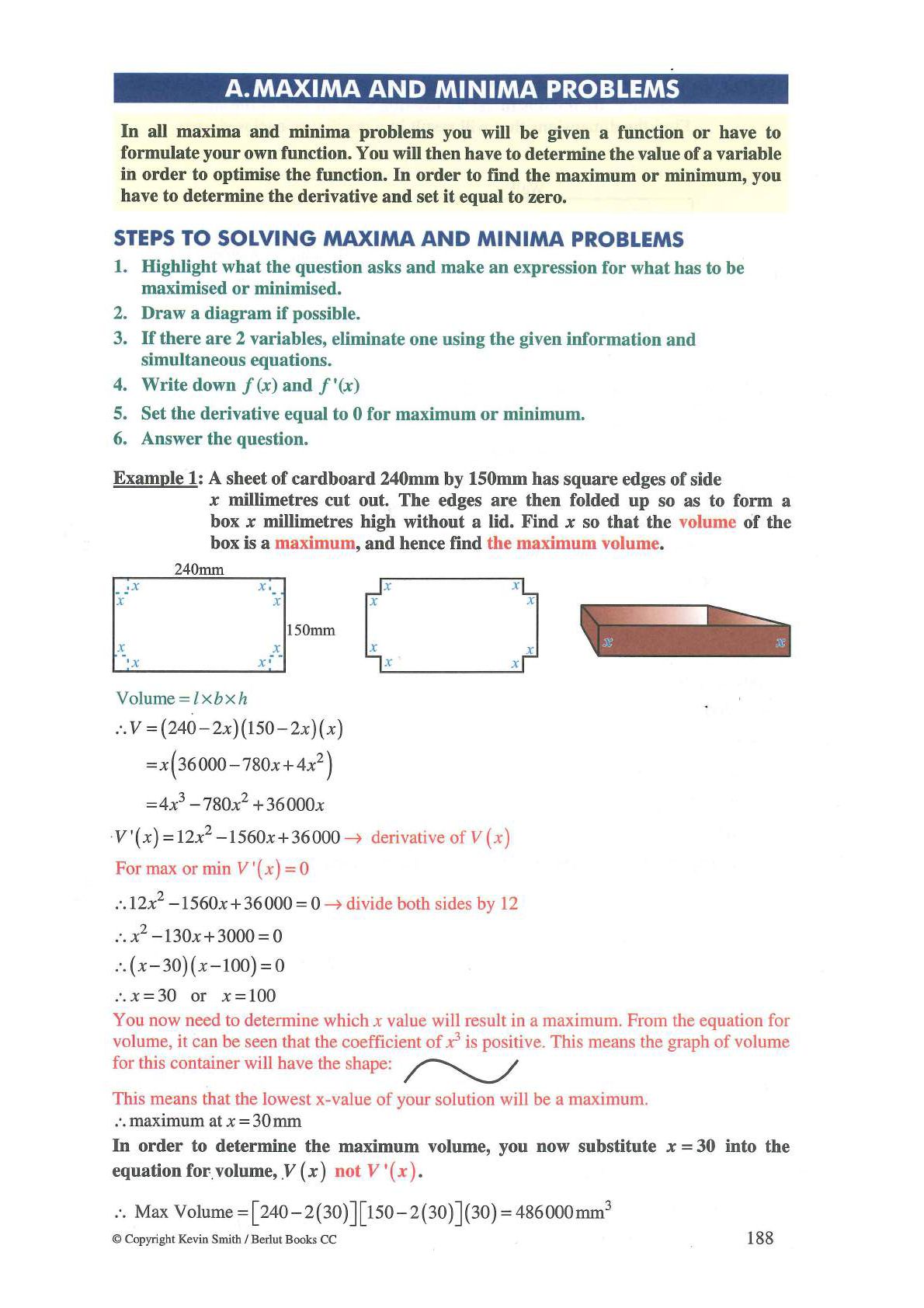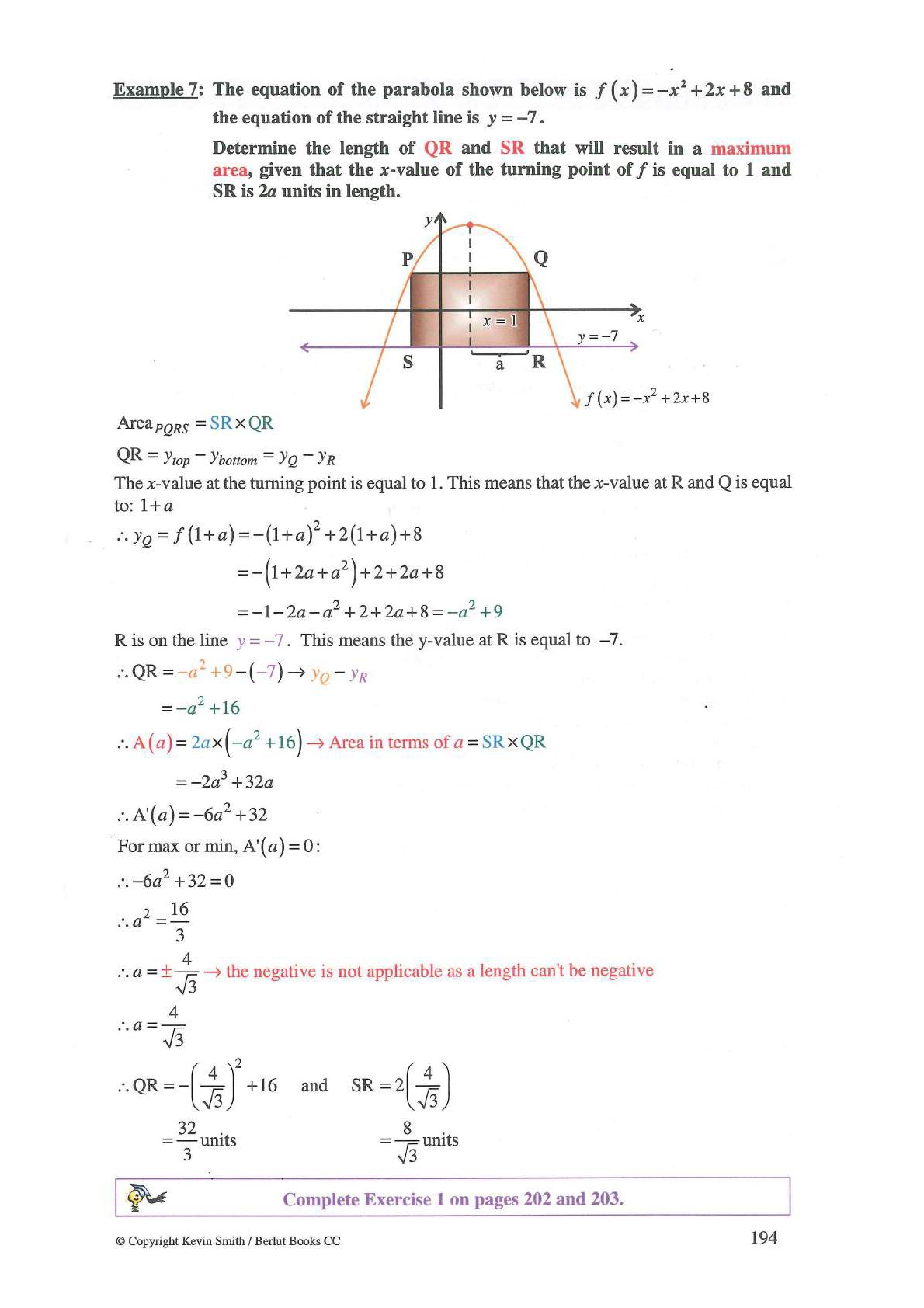 CHAPTER 9 OPTIMISATION OF FUNCTIONS AND RATE OF CHANGE