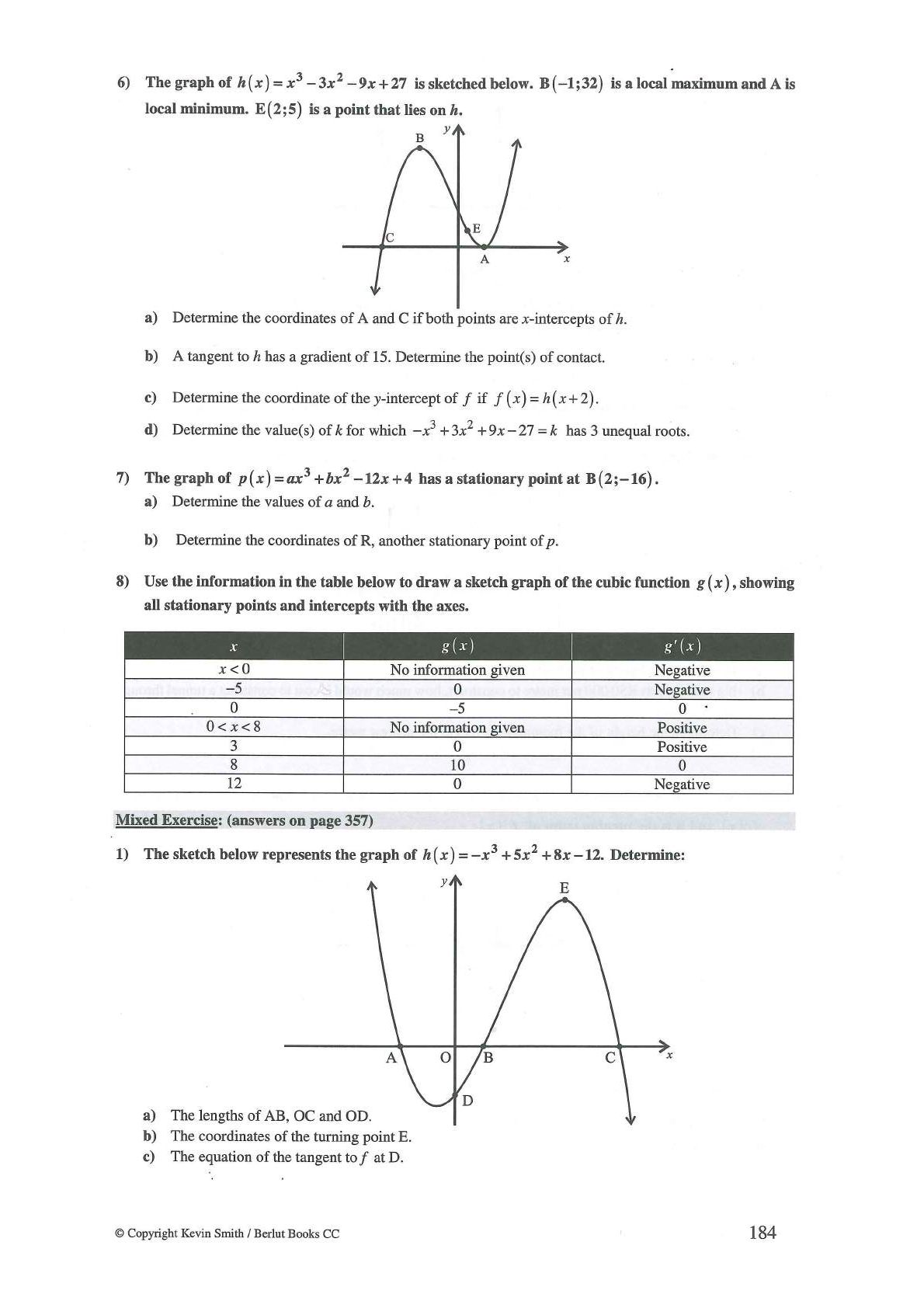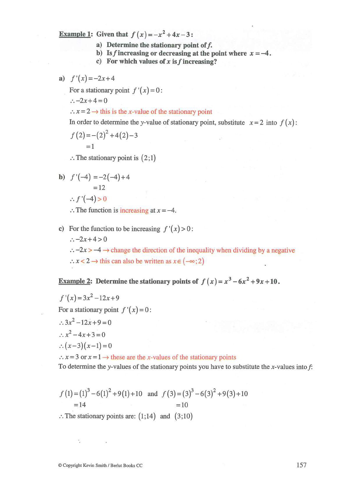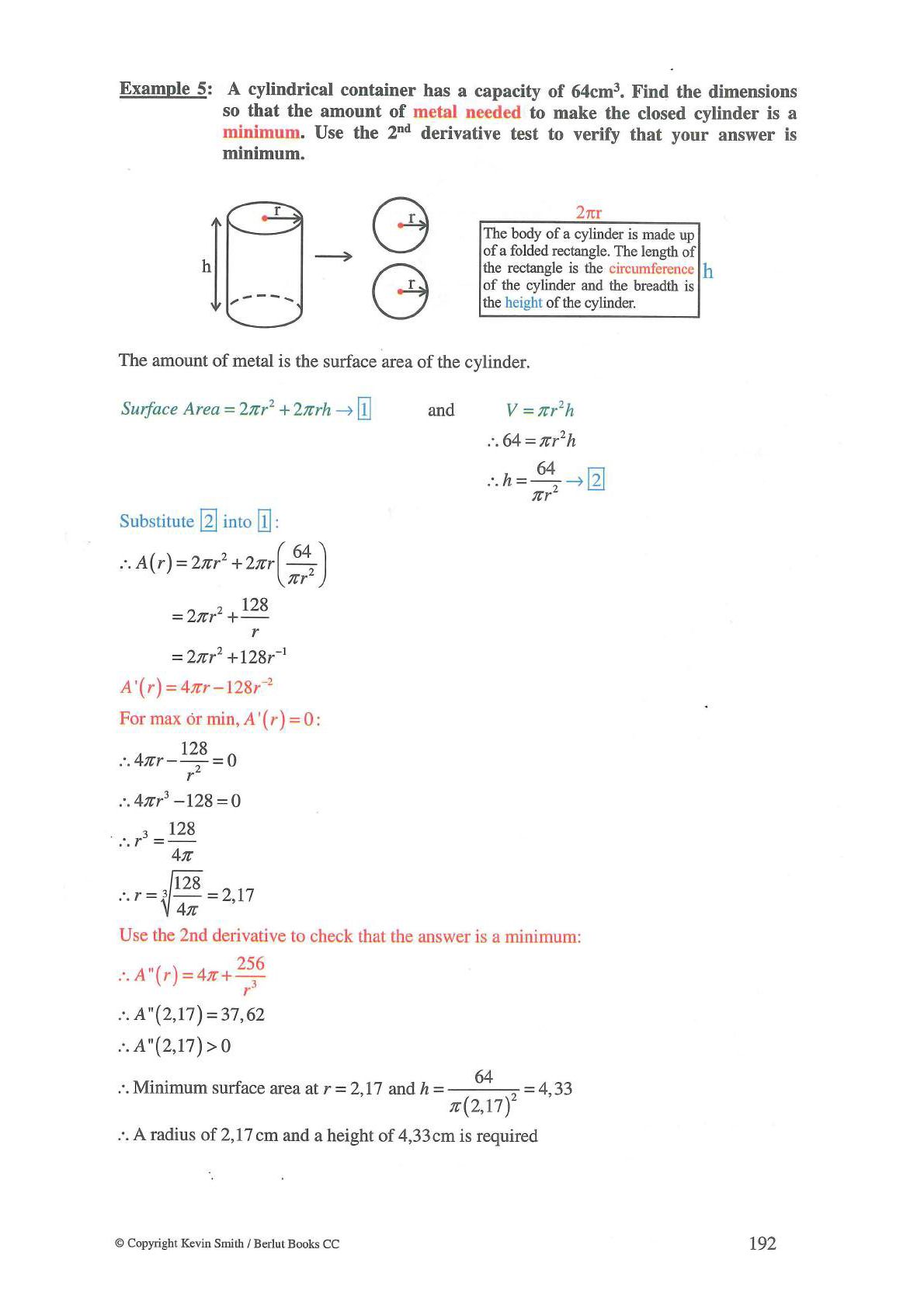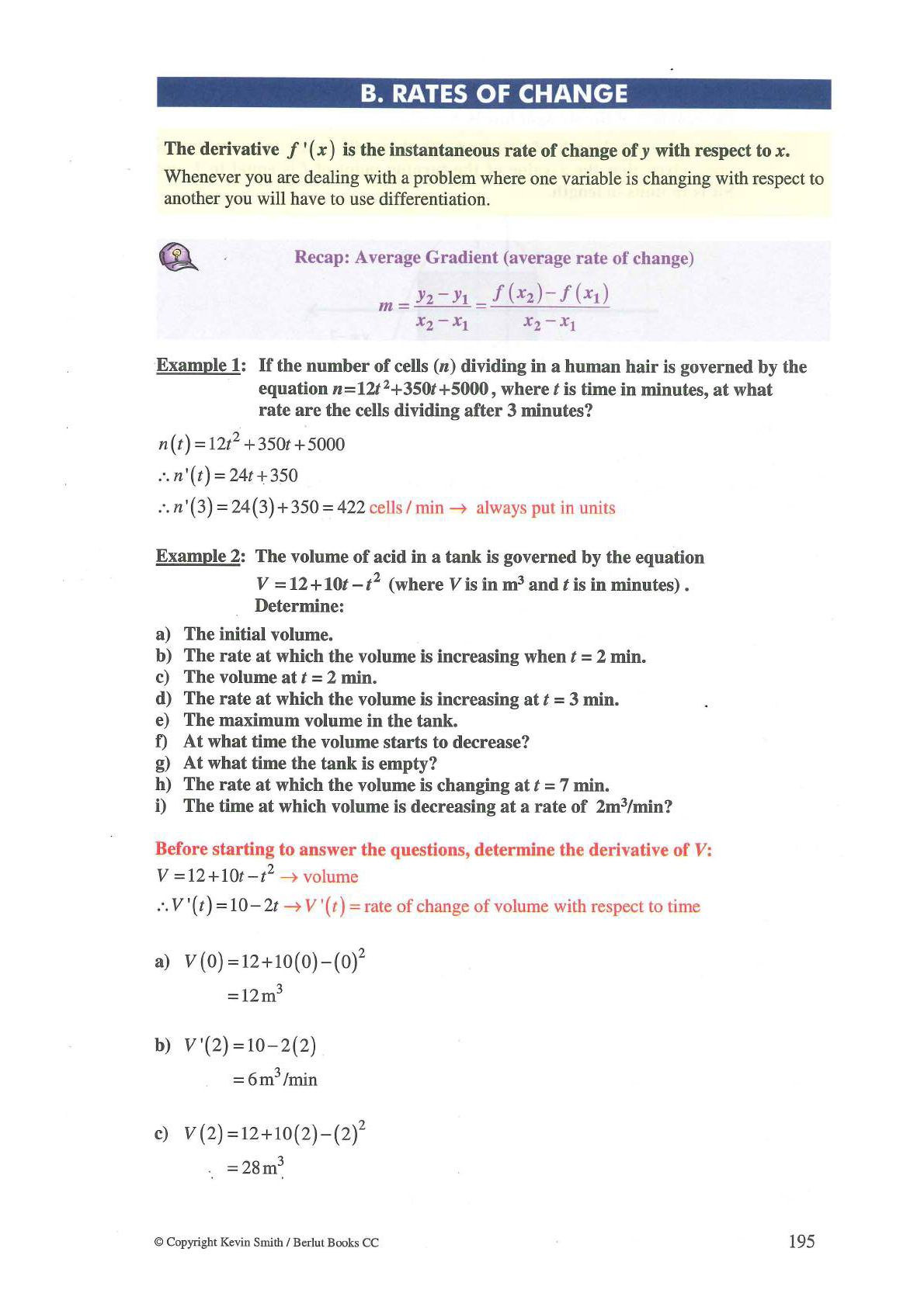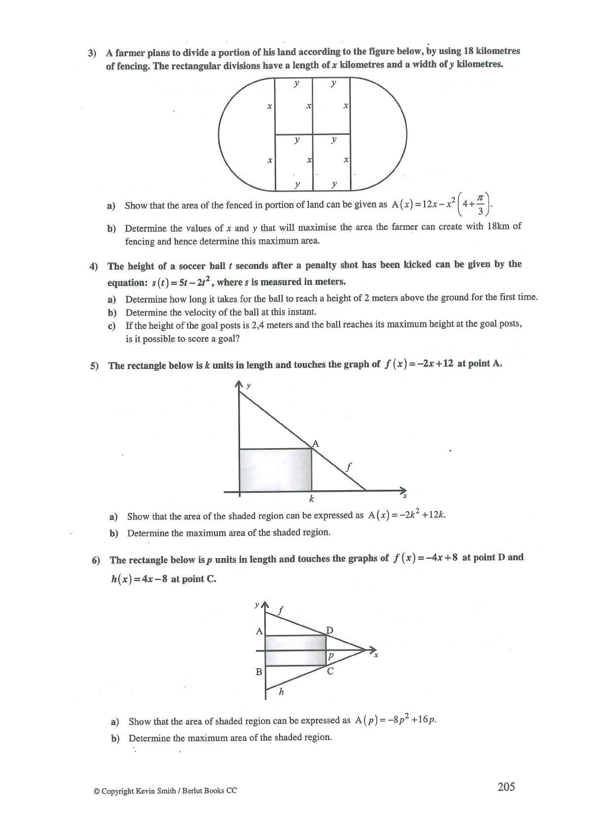 CHAPTER 9 OPTIMISATION OF FUNCTIONS AND RATE OF CHANGE