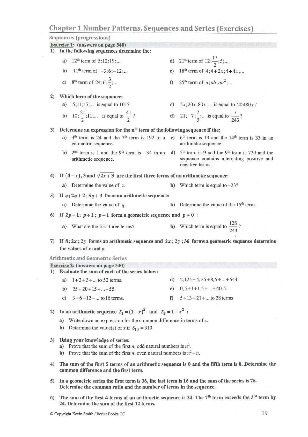 CHAPTER 1 NUMBER PATTERNS, SEQUENCES AND SERIES