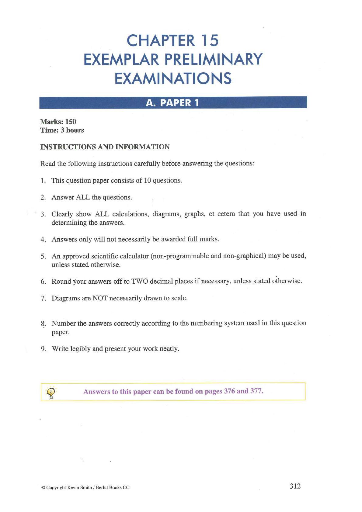CHAPTER 15 EXEMPLAR PRELIMINARY EXAMINATIONS
