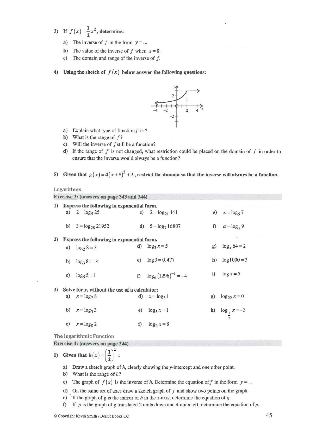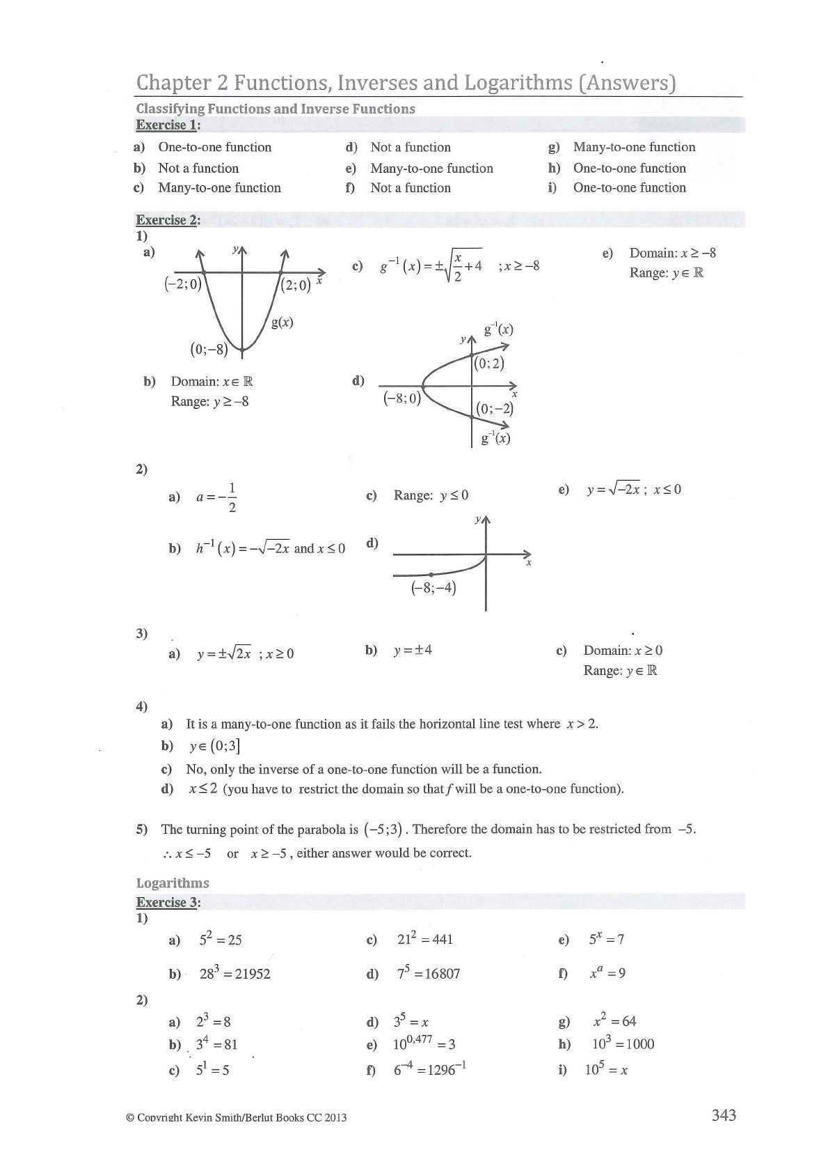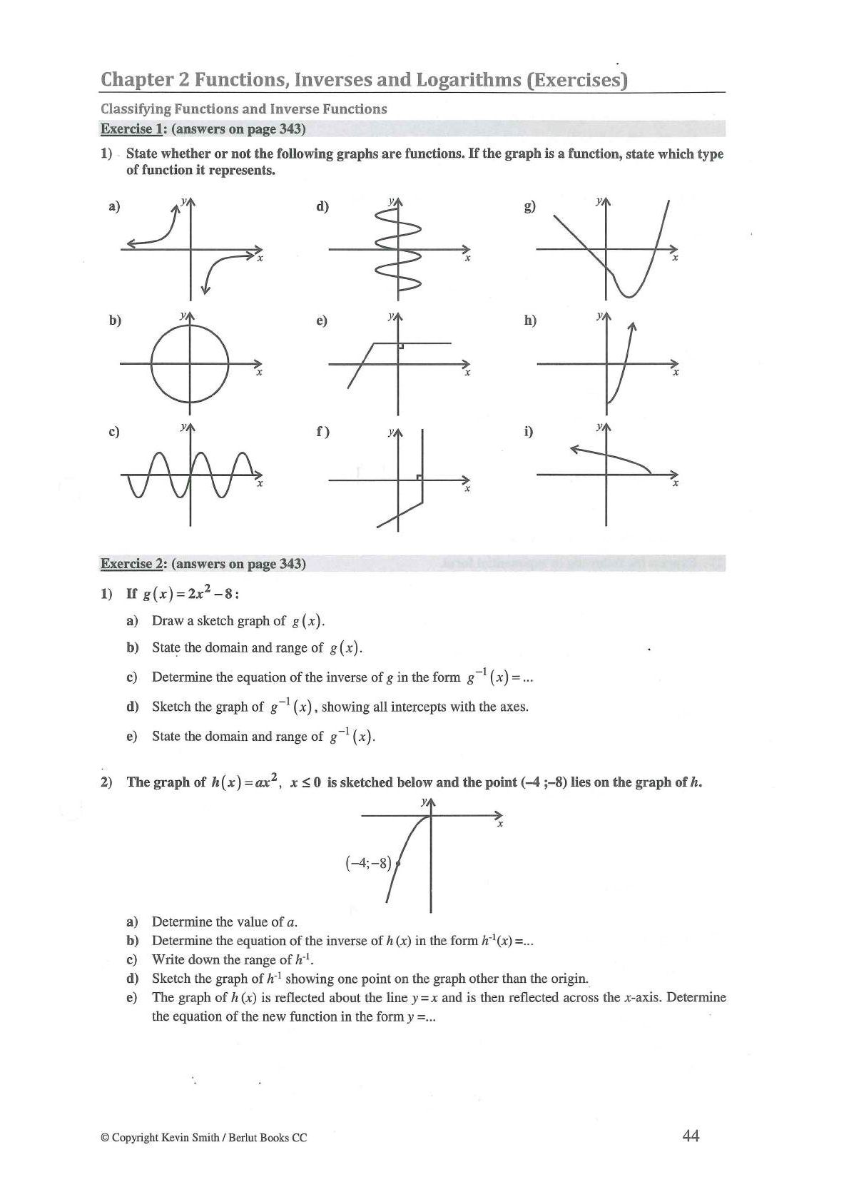 CHAPTER 2 FUNCTIONS, INVERSES AND LOGARITHMS
