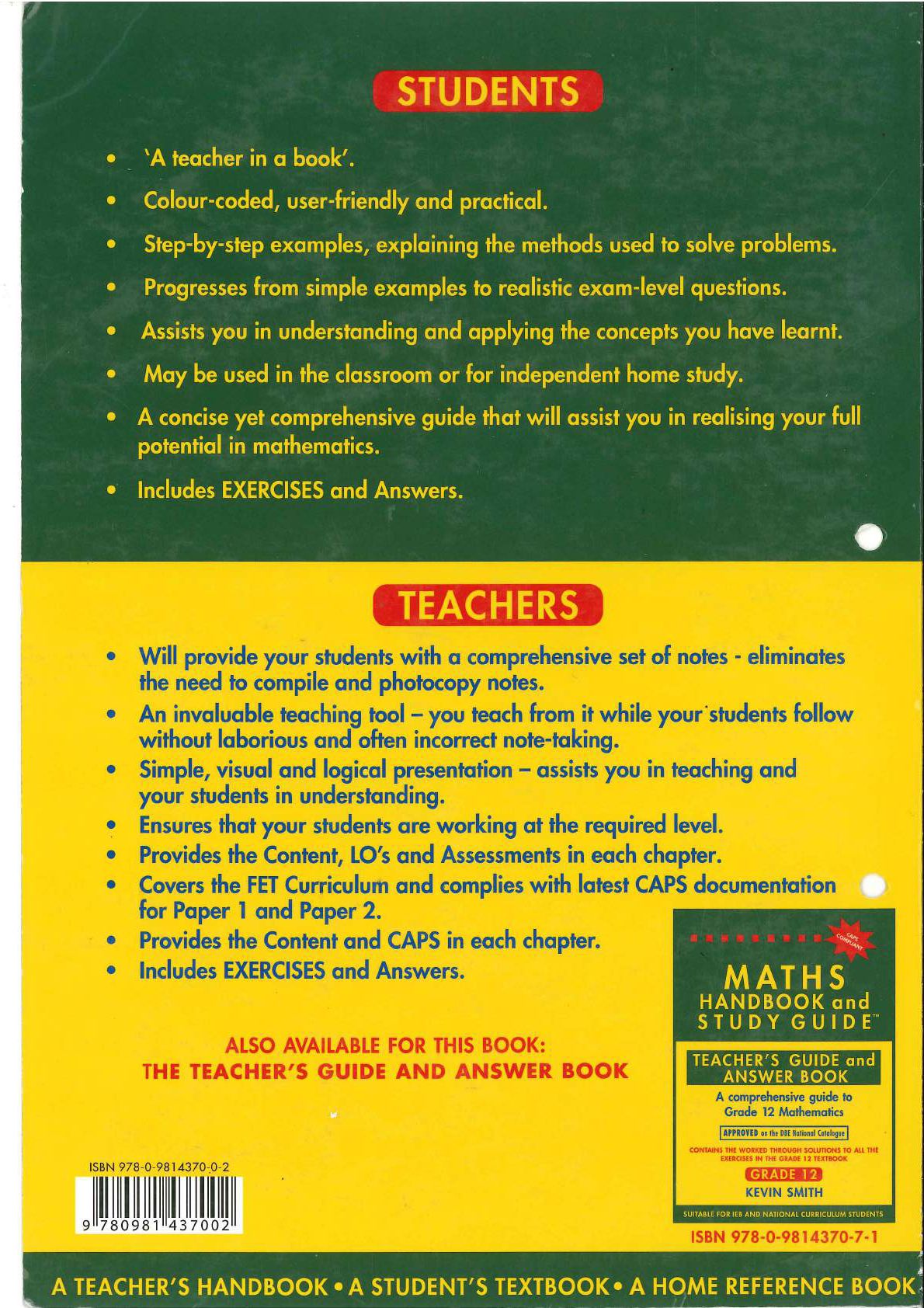Maths Handbook And Study Guide Grade 12 Kevin Smith PDF: