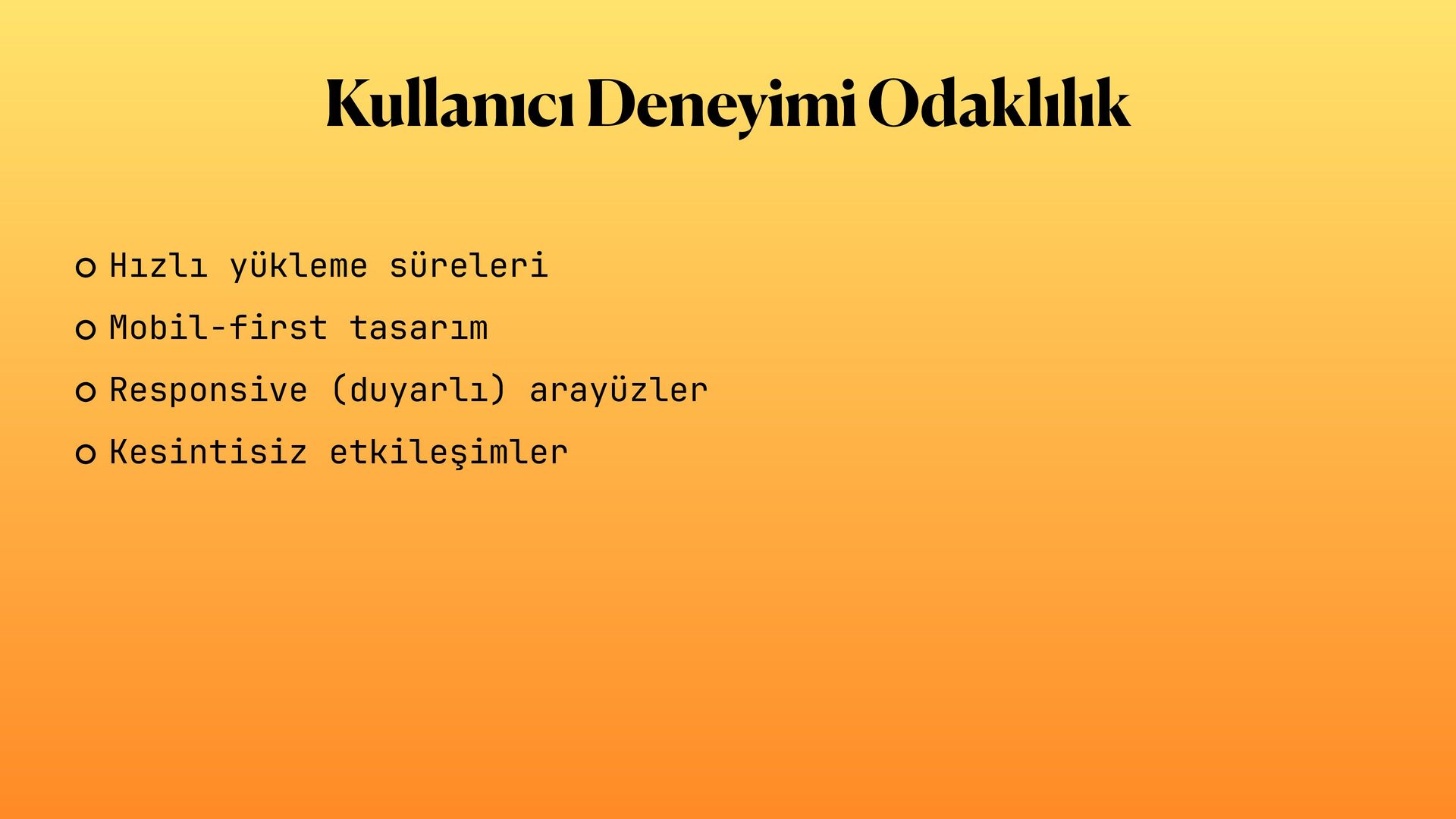 tabanı paylaşıyorsun (backend + web) •Native developer'a daha az ihtiyaç •Güncellemeler instant (web'i güncelle, app otomatik güncellenir) •Hızlı prototipleme Dezavantajları • Çok karmaşık animasyonlar/UI için uygun değil • Oyun veya yoğun grafik uygulamalar için değil • Performance native kadar iyi olmayabilir • App Store review süreçleri yine var