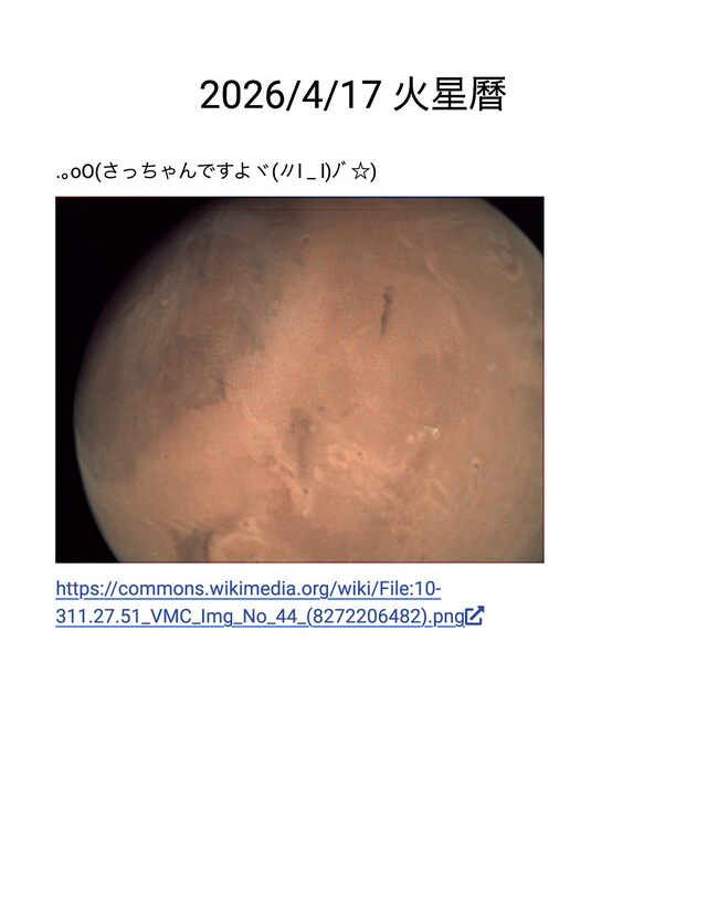 2026/4/17 火星曆 . 。oO( さっちゃんですよヾ( 〃l _ l) ノ☆) https://commons.wikimedia.org/wiki/File:10-