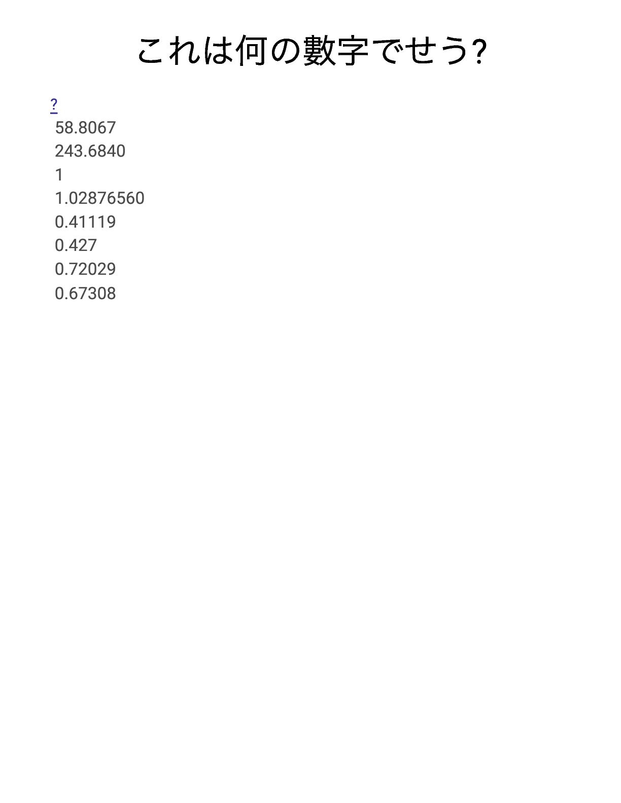 これは何の數字でせう? ? 58.8067 243.6840 1 1.02876560 0.41119 0.427 0.72029 0.67308