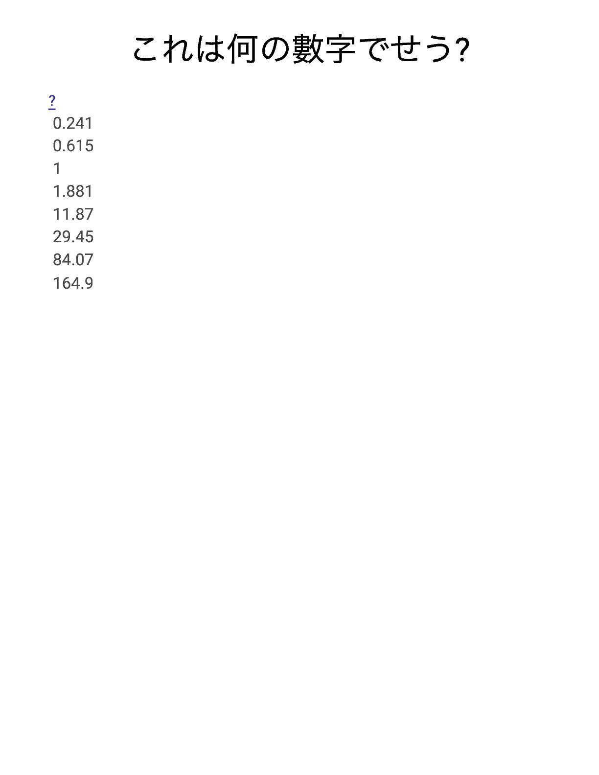 これは何の數字でせう? ? 0.241 0.615 1 1.881 11.87 29.45 84.07 164.9
