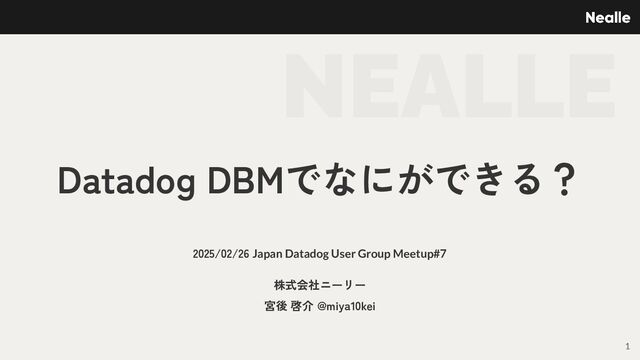 NEALLE Datadog DBMでなにができる? 2025/02/26 Japan Datadog User Group Meetup#7 株式会社ニーリー