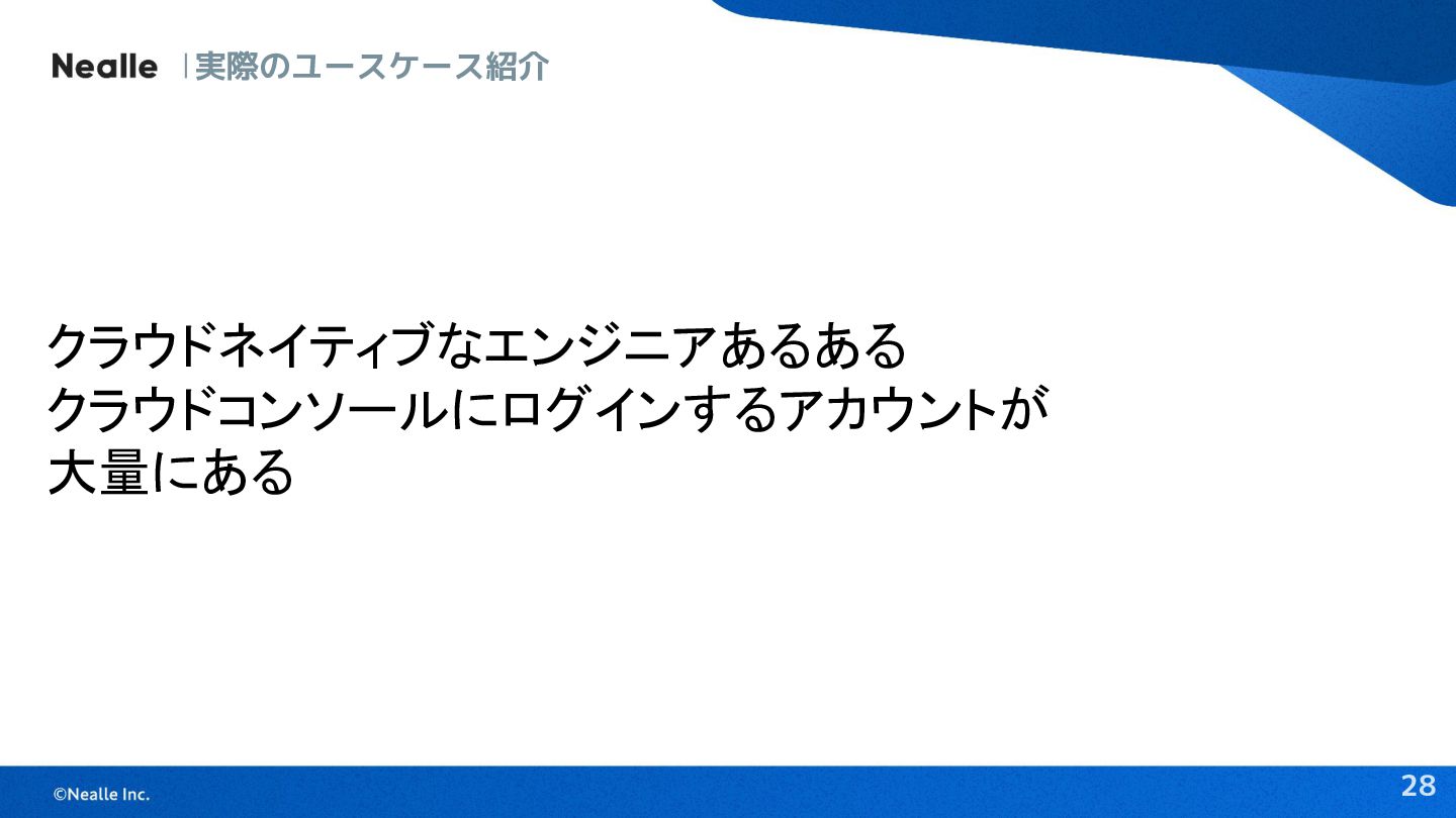 28 クラウドネイティブなエンジニアあるある クラウドコンソールにログインするアカウントが 大量にある 実際のユースケース紹介