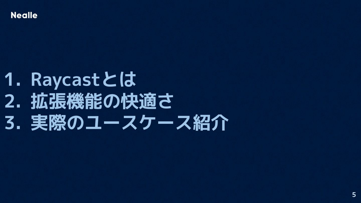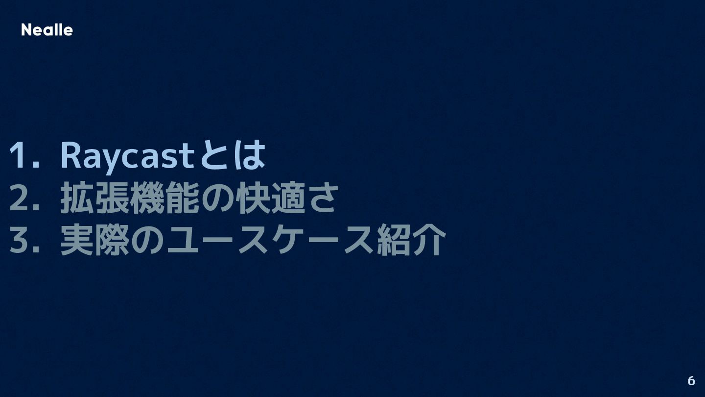 5 1. Raycastとは 2. 拡張機能の快適さ 3. 実際のユースケース紹介
