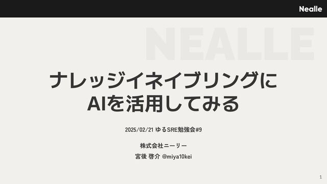 NEALLE ナレッジイネイブリングに AIを活用してみる 1 2025/02/21 ゆるSRE勉強会#9 株式会社ニーリー 宮後 啓介 @miya10kei