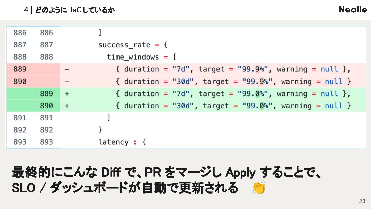 4|どのように IaC しているか 23 • 最終的にこんな Diff で、PR をマージし