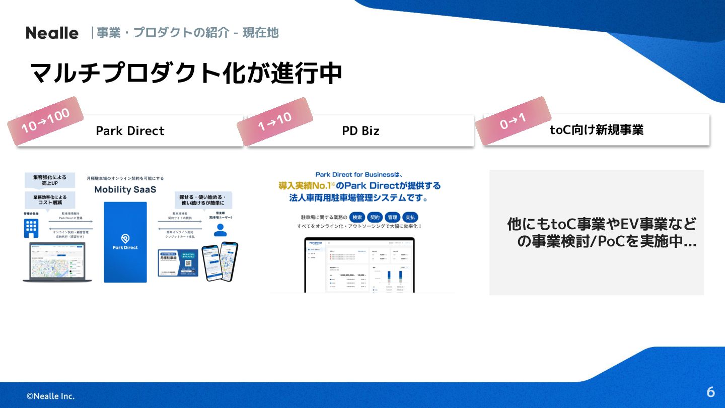 1. 事業・プロダクトの紹介 - 現在地 マルチプロダクト化が進行中 6 Park Direct PD Biz toC向け新規事業
