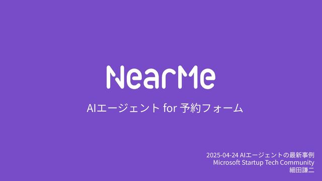 AIエージェント for 予約フォーム 2025-04-24 AIエージェントの最新事例 Microsoft Startup Tech Community 細⽥謙⼆