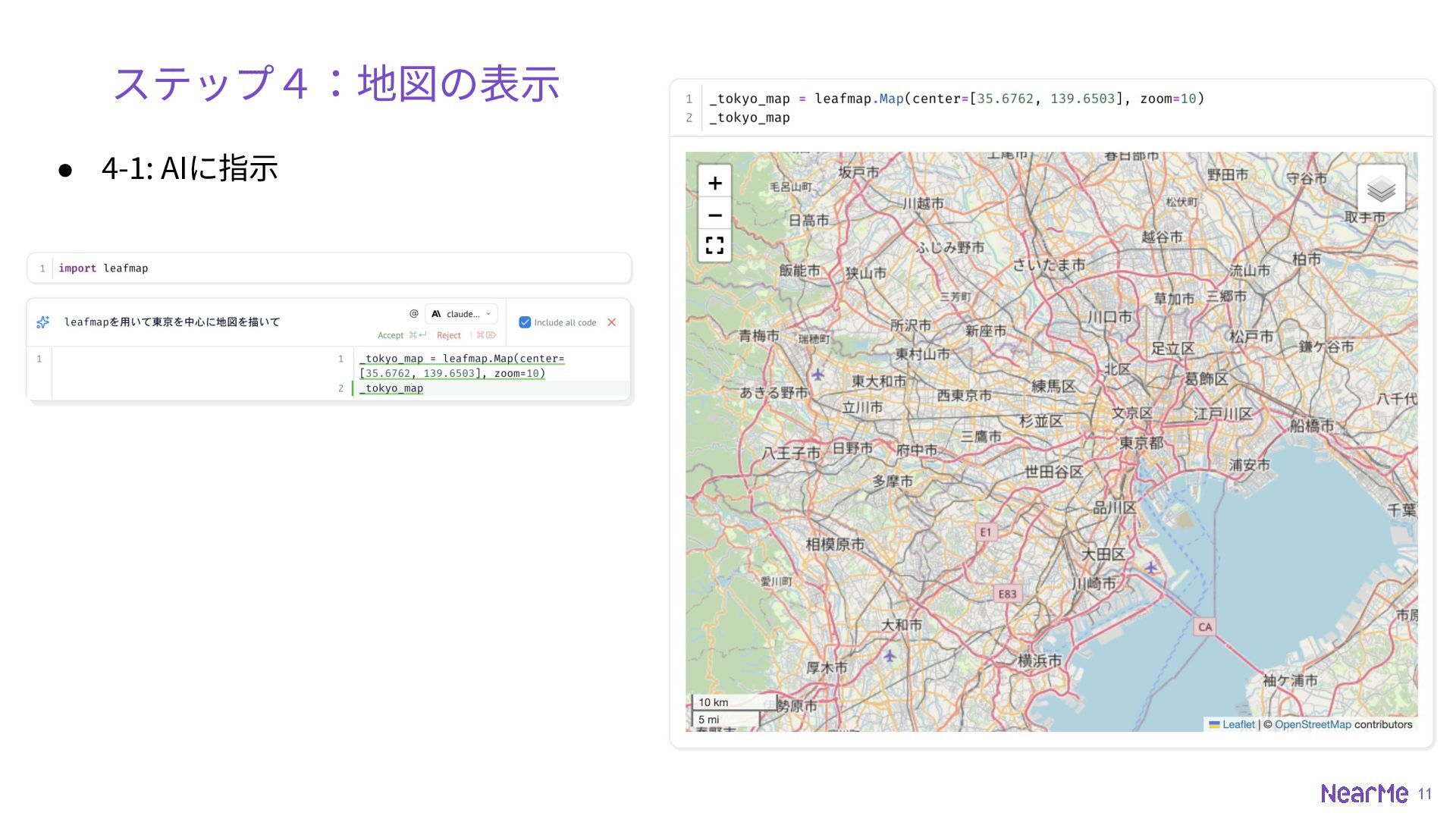 11 ステップ4:地図の表⽰ • 4-1: AIに指⽰