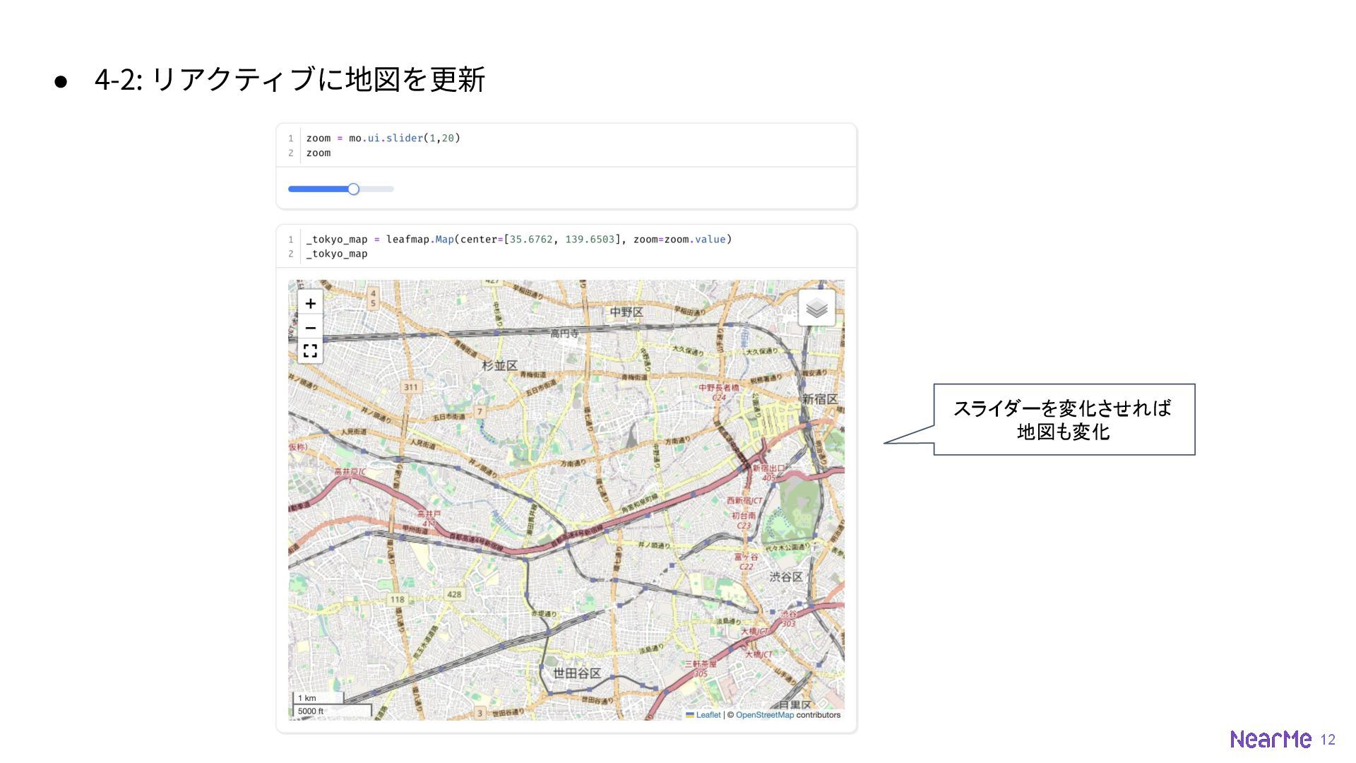 12 • 4-2: リアクティブに地図を更新 スライダーを変化させれば 地図も変化