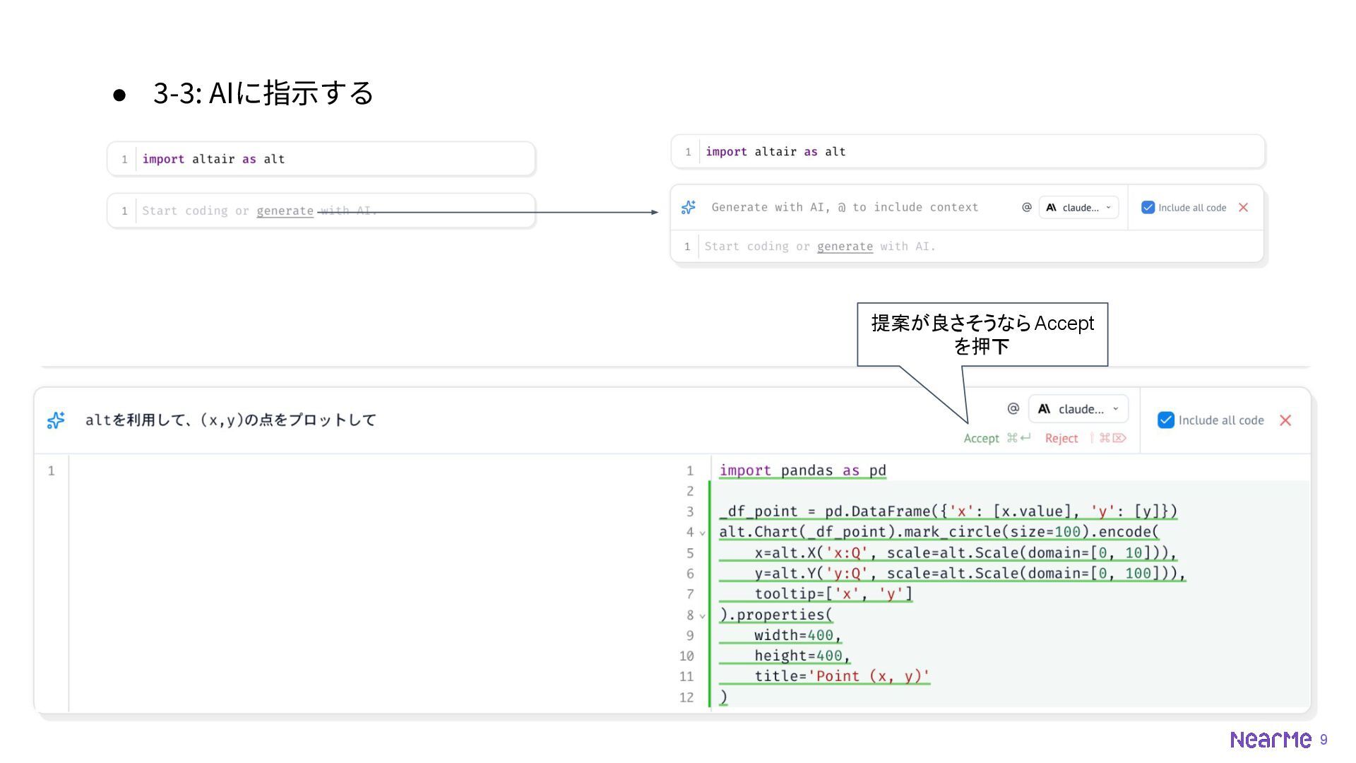 9 • 3-3: AIに指⽰する 提案が良さそうならAccept を押下