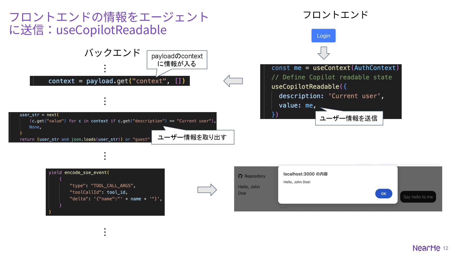 単なるテキストチャットを超えた、リッチでインタラクティブなAIアプリケーション(Agent-Native App)を構築するためのSDK「CopilotKit」と、そのUIプロトコルである「AG-UI」の活用事例について解説しました。