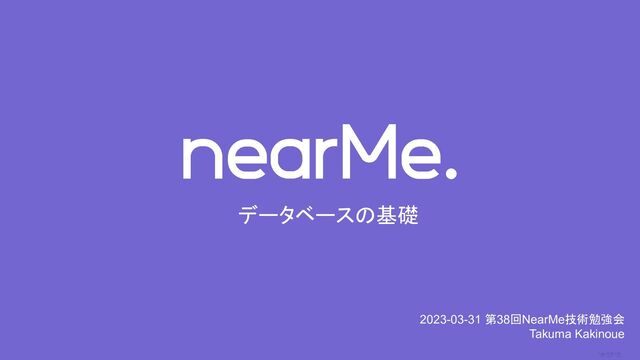 0 データベースの基礎 2023-03-31 第38回NearMe技術勉強会 Takuma Kakinoue