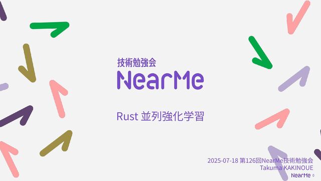 0 Rust 並列強化学習 2025-07-18 第126回NearMe技術勉強会 Takuma KAKINOUE