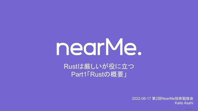 0 Rustは厳しいが役に立つ Part1「Rustの概要」 2022-06-17 第2回NearMe技術勉強会 Kaito Asahi