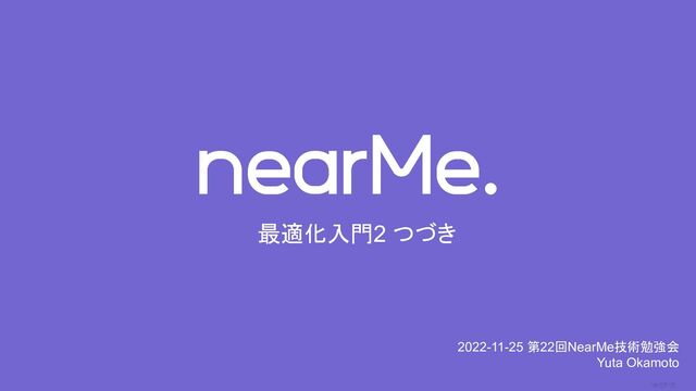 0 最適化入門2 つづき 2022-11-25 第22回NearMe技術勉強会 Yuta Okamoto