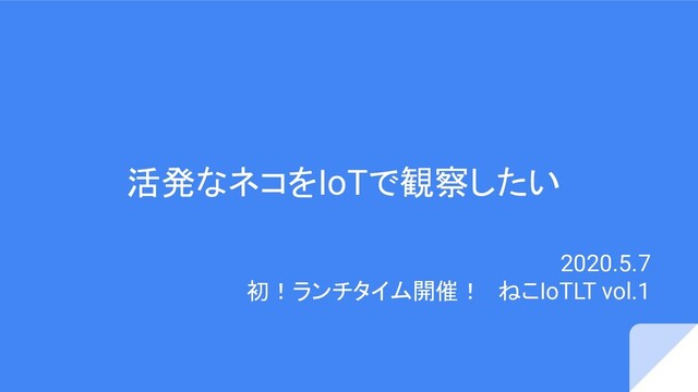 活発なネコをIoTで観察したい 2020.5.7 初!ランチタイム開催! ねこIoTLT vol.1