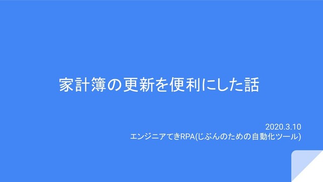 家計簿の更新を便利にした話 2020.3.10 エンジニアてきRPA(じぶんのための自動化ツール)