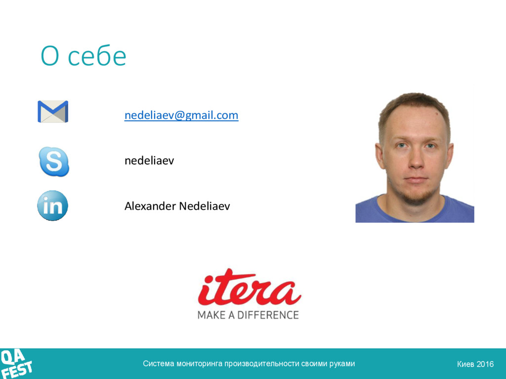 В своем докладе я расскажу вам о том, как с помощью open source инструментов можно построить систему мониторинга производительности приложения, а также представить полученные данные в доступной и наглядной форме. А технология контейнеров Docker поможет сделать это максимально быстро и просто.