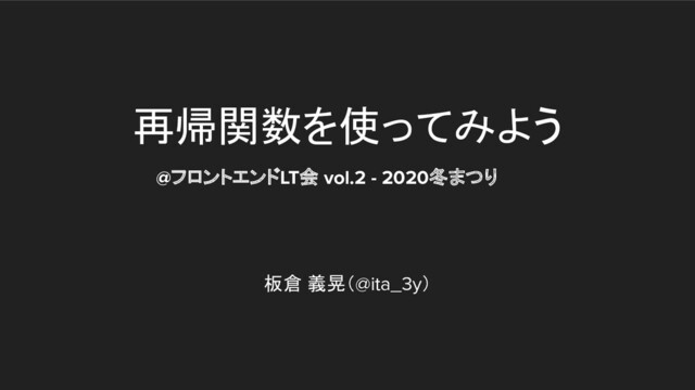 再帰関数を使ってみよう 板倉 義晃(@ita_3y) @フロントエンドLT会 vol.2 - 2020冬まつり