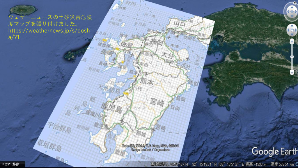 ウェザーニュースの土砂災害危険 度マップを張り付けました。 https://weathernews.jp/s/dosh a/?1