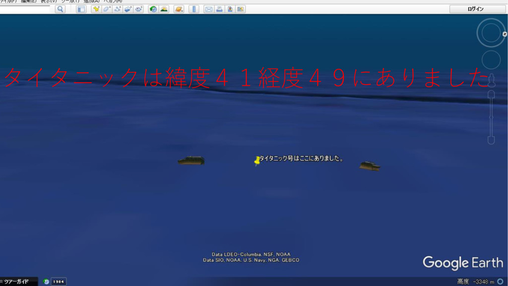 タイタニックは緯度41経度49にありました