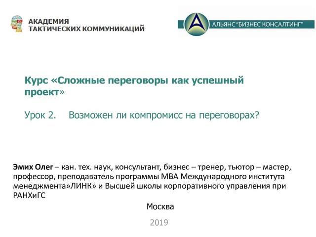 • Возможен ли компромисс на переговорах? Модель "win – win". Когда она работает?
