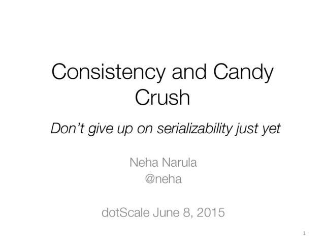 A short version of a talk on serializability and consistency, given at dotScale in Paris. Describes consistency in three contexts: database transactions, consistency models, and the CAP theorem.