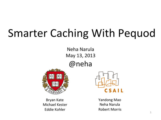 Application-level caches are incredibly useful, but difficult to use well on structured, changing data. In this talk I discuss why you might want to consider moving application computation into the cache in the form of cache joins, and I describe our system, Pequod, which is an in-memory key/value range store which implements these ideas.