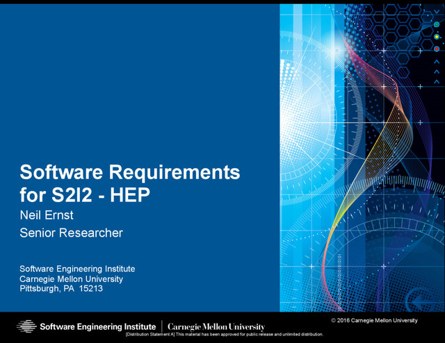 University Pittsburgh, PA 15213 [Distribution Statement A] This material has been approved for public release and unlimited distribution. Software Requirements for S2I2 - HEP Neil Ernst Senior Researcher