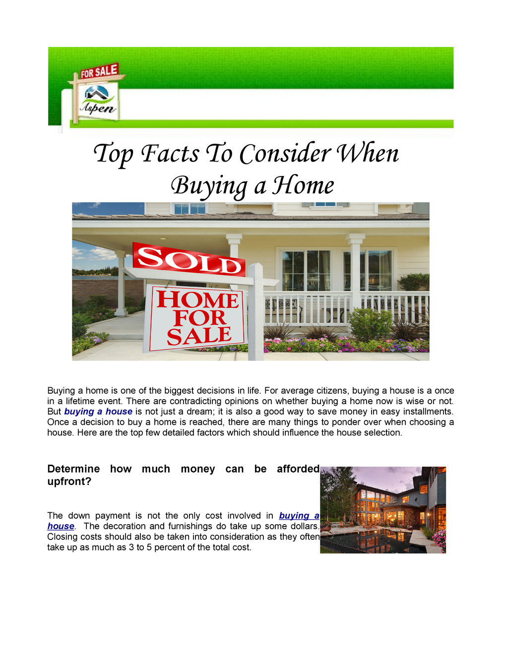 Buying a home is one of the biggest decisions in life. For average citizens, buying a house is a once in a lifetime event. There are contradicting opinions on whether buying a home now is wise or not. But buying a house is not just a dream; it is also a good way to save money in easy installments. Once a decision to buy a home is reached, there are many things to ponder over when choosing a house. Here are the top few detailed factors which should influence the house selection.