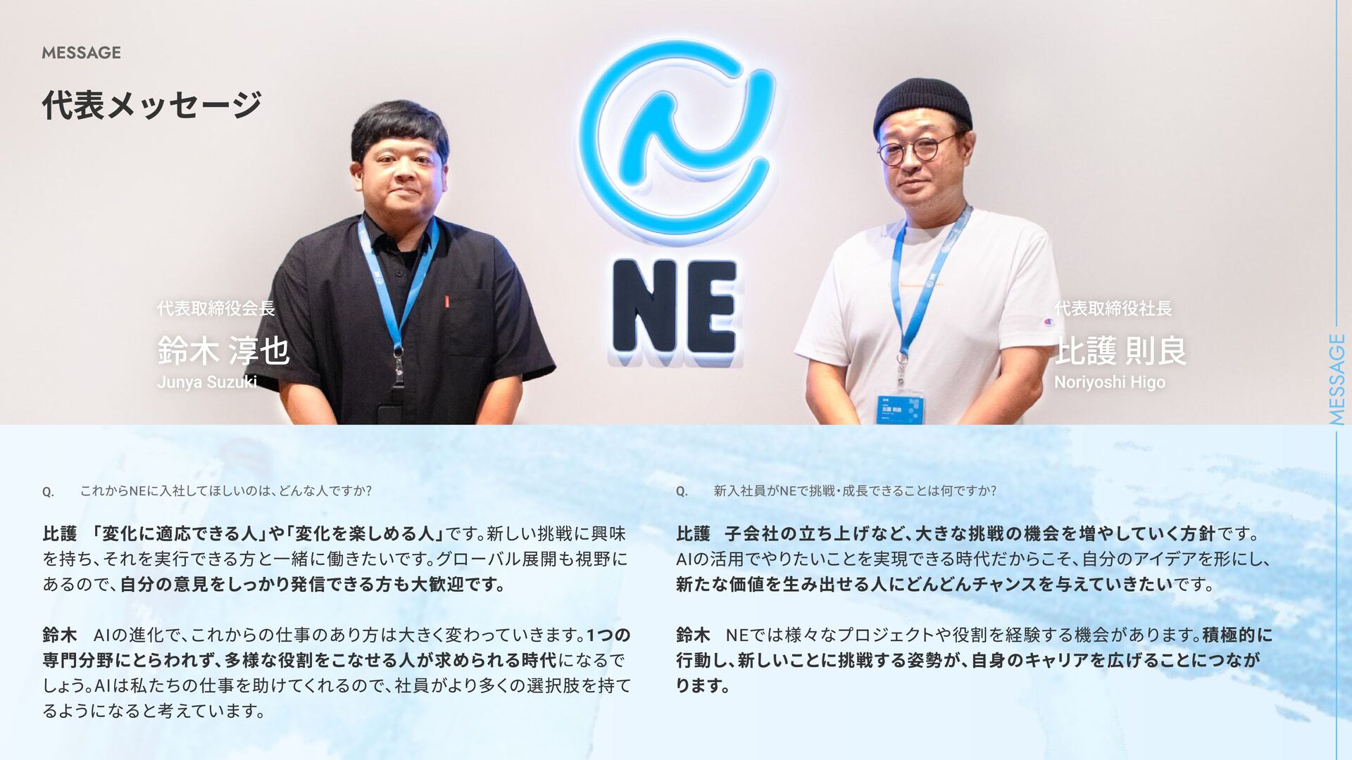 NEでは一緒に働く仲間を募集しています!下記サイトもぜひご覧ください。 ▼採用サイト https://ne-inc.jp/recruit ▼コーポレートサイト https://ne-inc.jp/