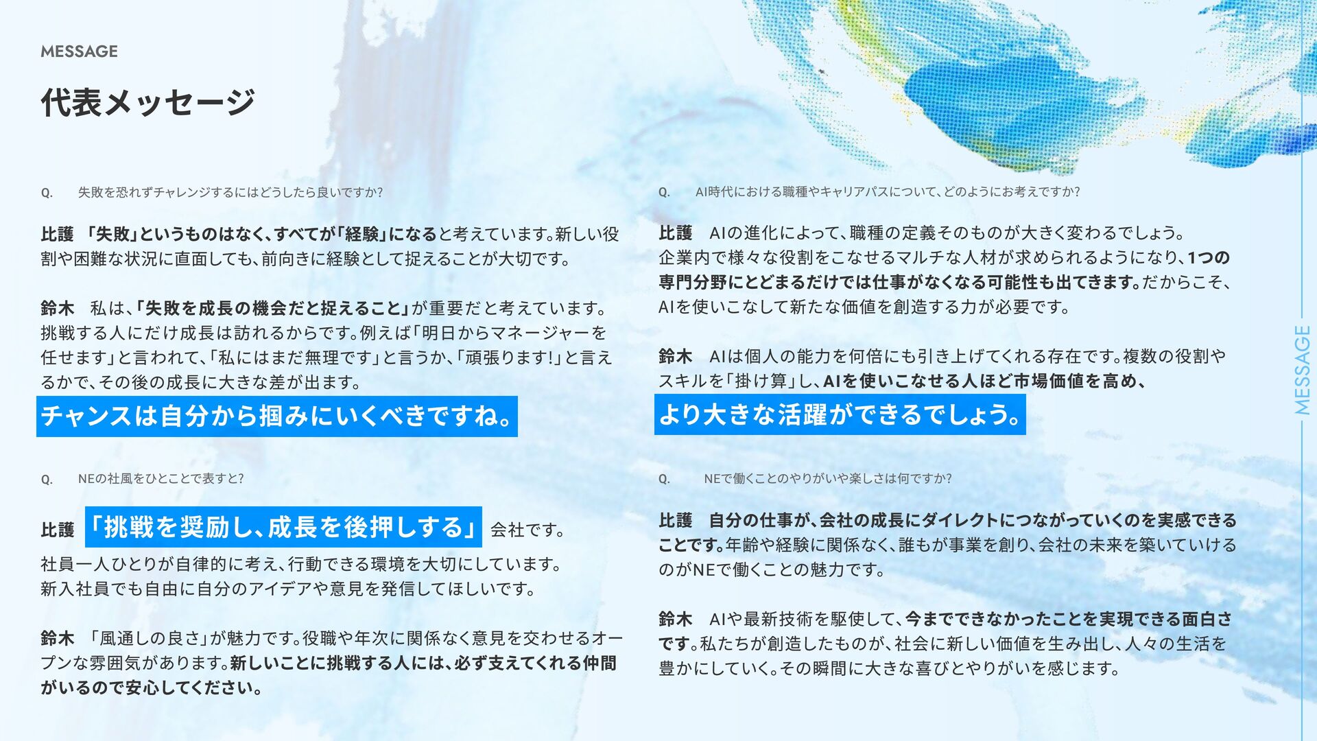 NEの事業やバリューズ、カルチャーについてまとめた資料です。