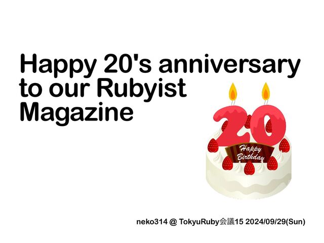 ɹneko314 @ TokyuRubyձٞ15 2024/09/29(Sun) Happy 20's anniversary to our Rubyist