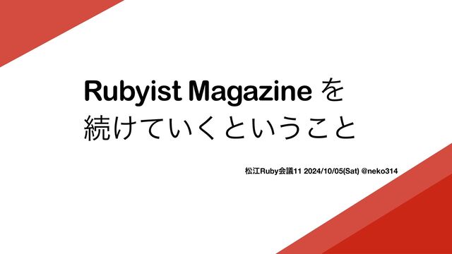 松江Ruby会議11( https://matsue.rubyist.net/matrk11/ )登壇時のスライドです。