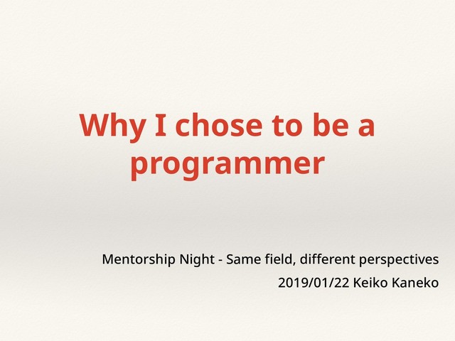 Same field, different perspectives 2019/01/22 Keiko Kaneko