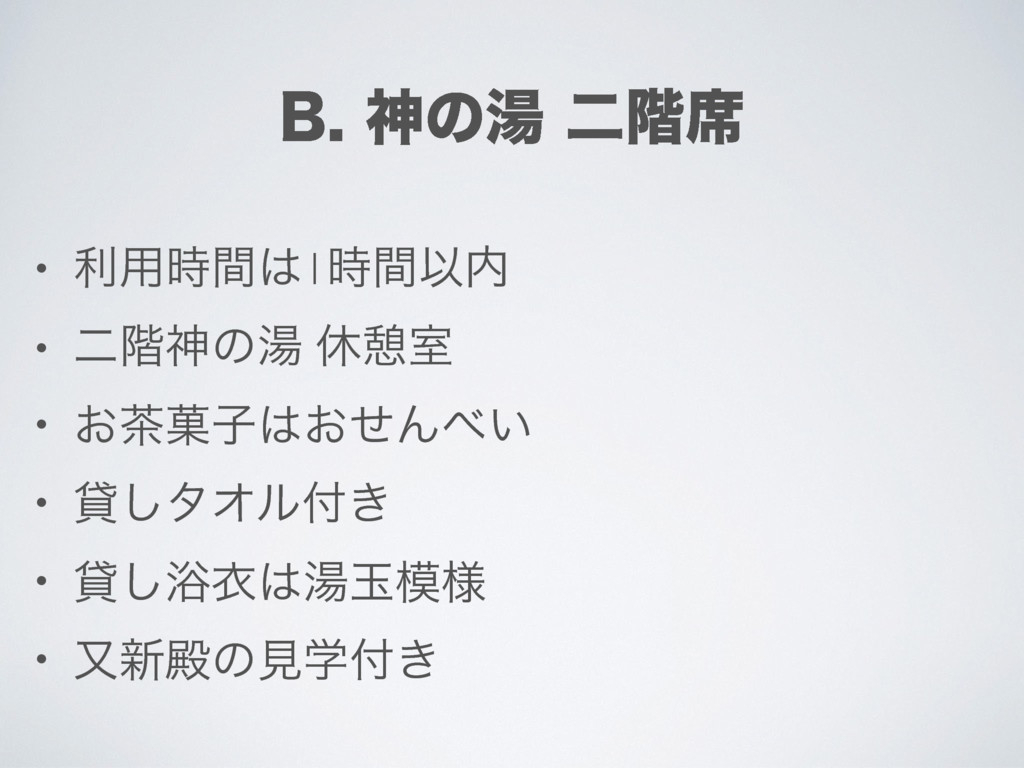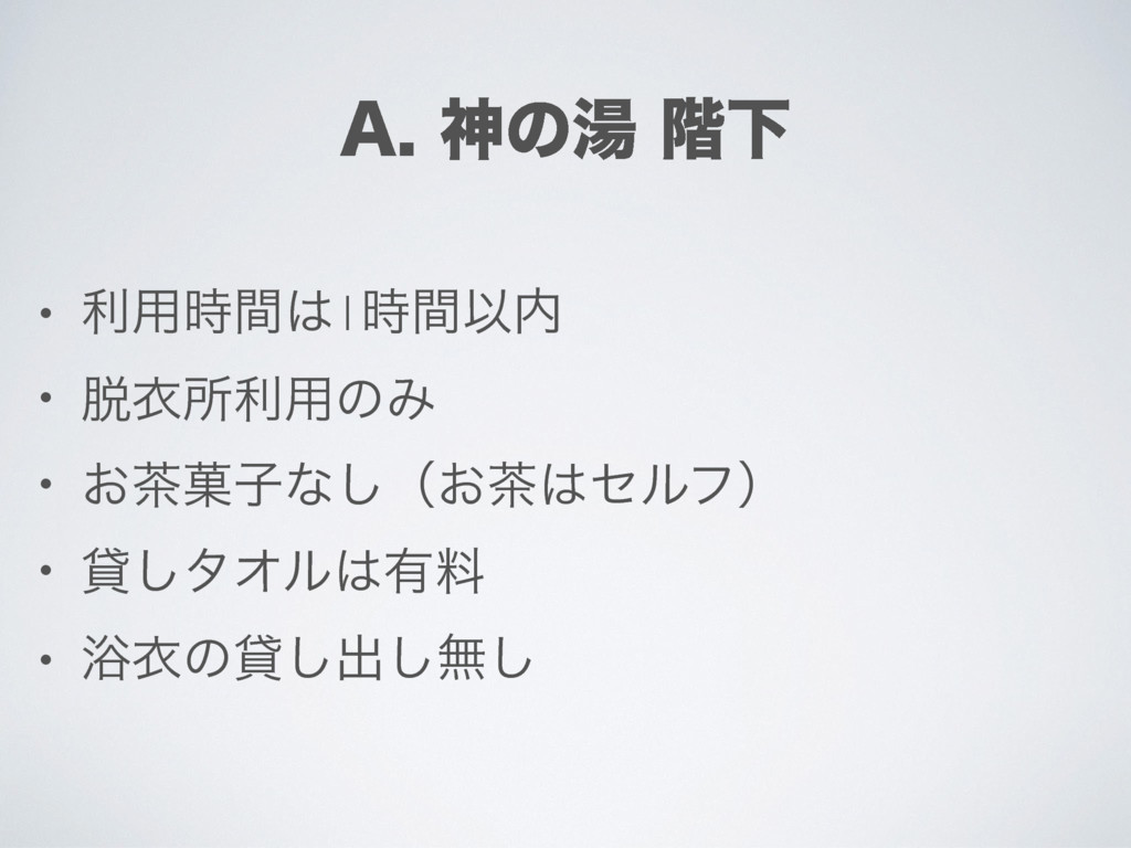 "ਆͷ౬֊Լ • ར༻࣌ؒ1࣌ؒҎ • ҥॴར༻ͷΈ • ͓՛ࢠͳ͠ʢ͓ηϧϑʣ • ି͠λΦϧ༗ྉ •